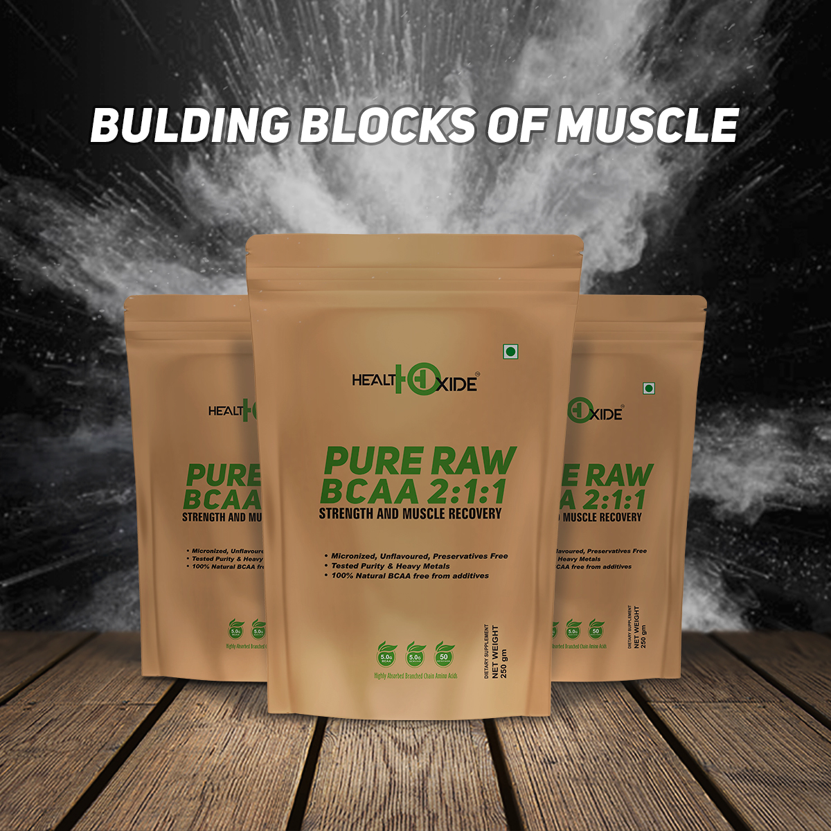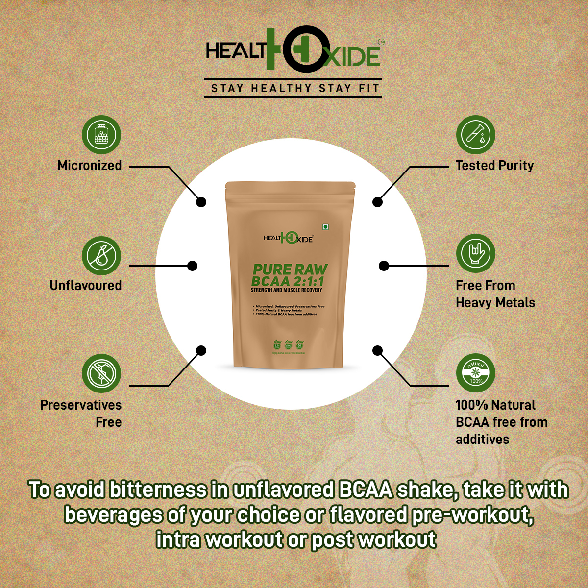 हेल्थऑक्साइड प्योर रॉ बीसीएए 100% पाउडर प्री/पोस्ट वर्कआउट सप्लीमेंट - 250 ग्राम
