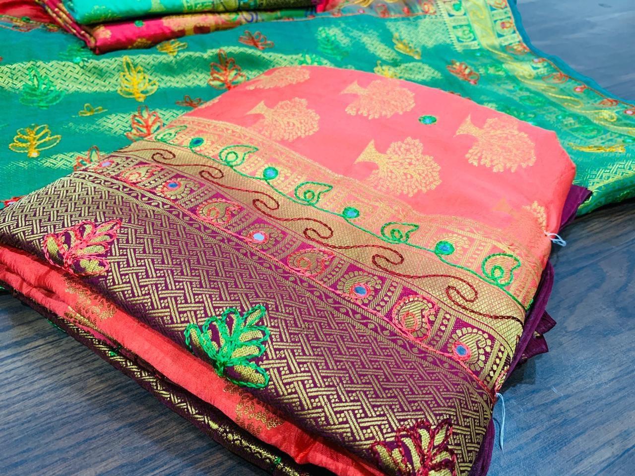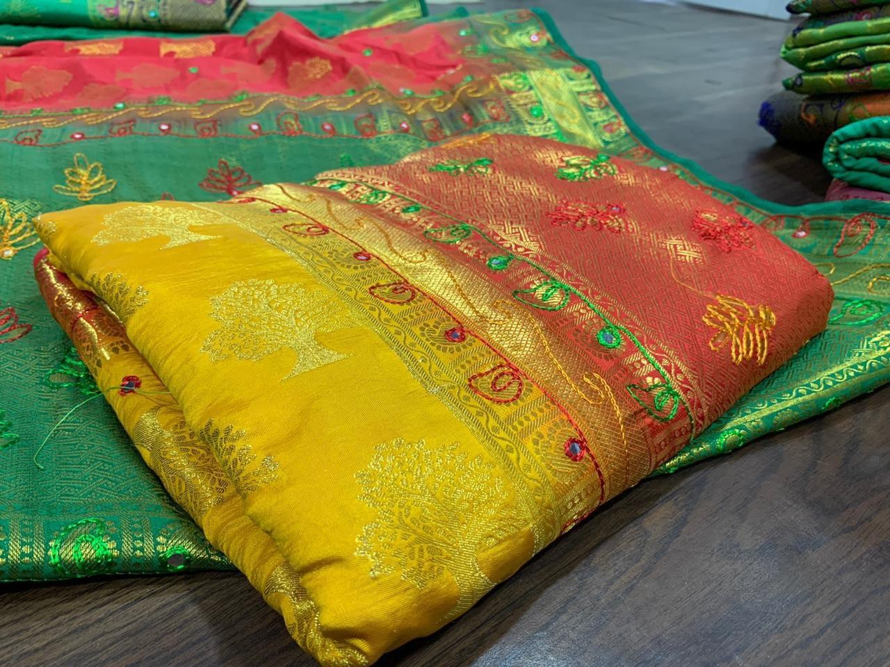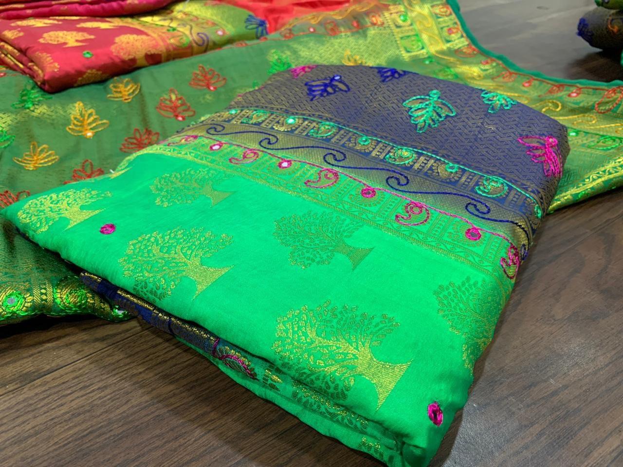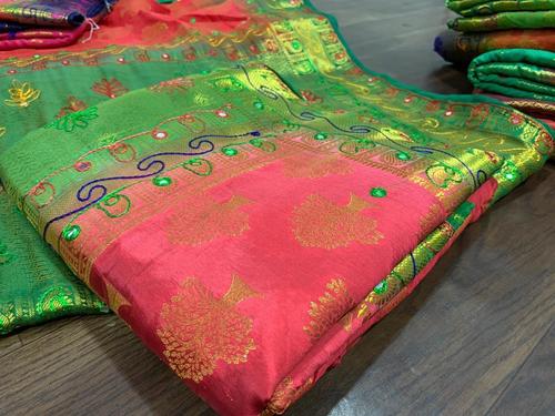 शादी के लिए शुद्ध बनारसी ज़री कार्य वाली सिल्क साड़ी