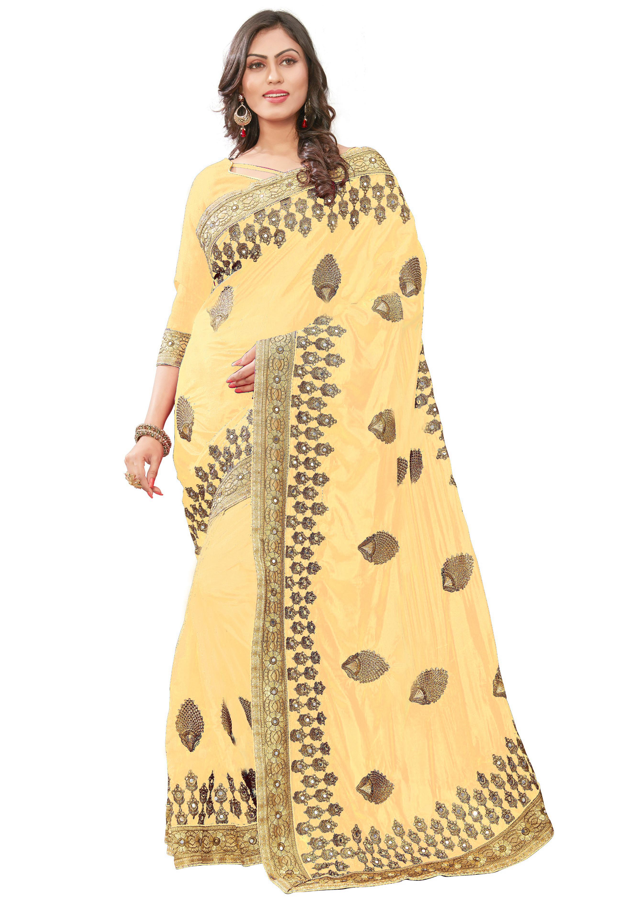 Explore in english - heavy embroidered & embellished work silk saree collection