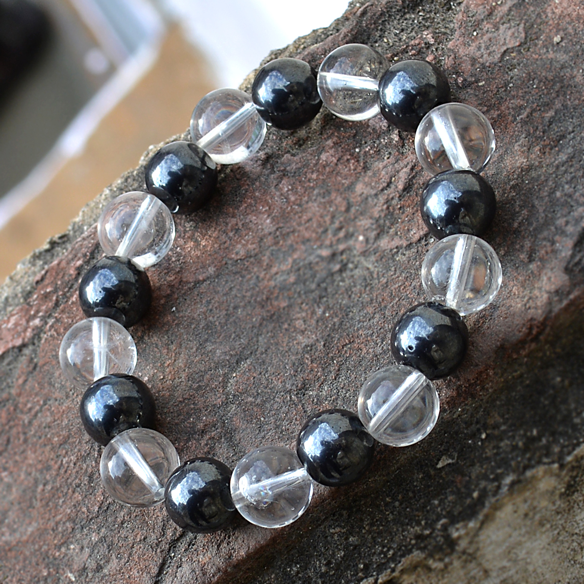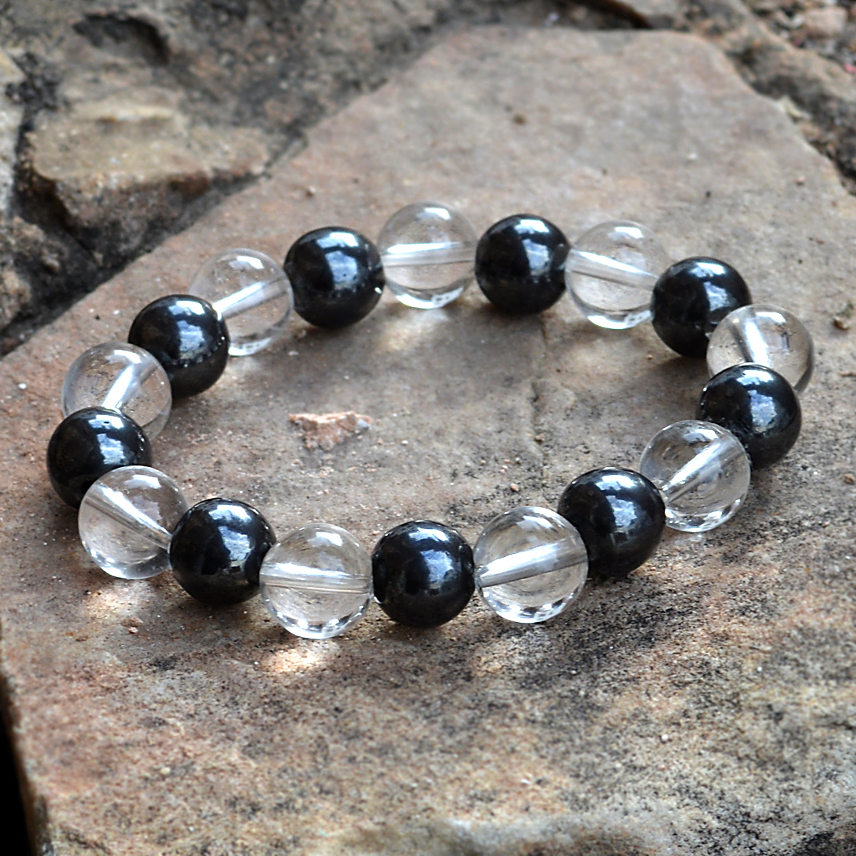 Explore in english - Hematite & Crystal Quartz Gemstone Bracelet PG-156025
