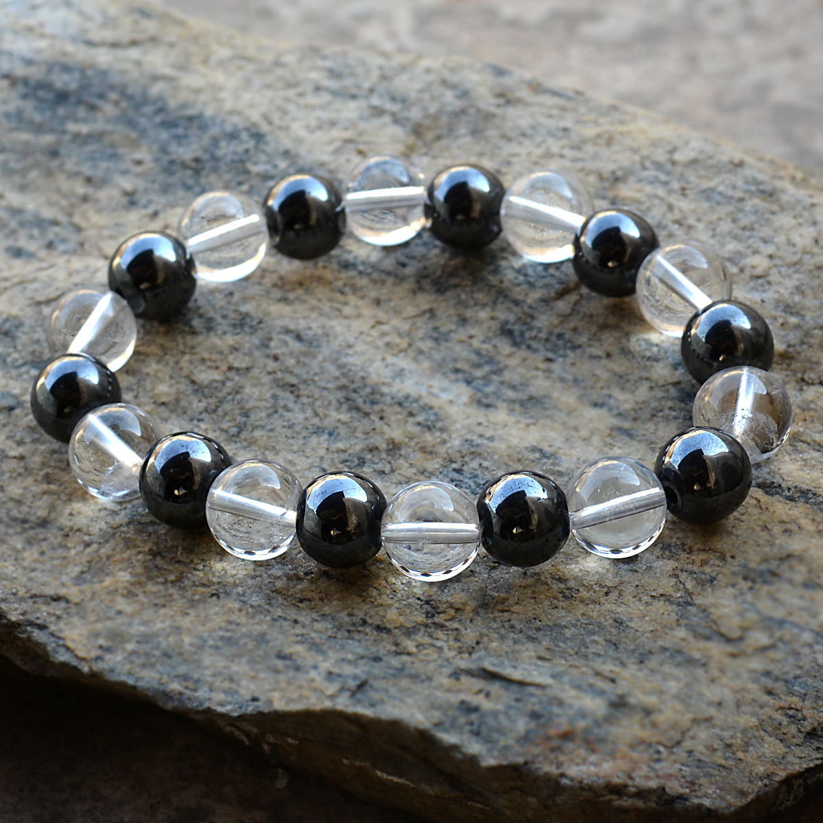 हेमाटाइट और क्रिस्टल क्वार्ट्ज स्टोन ब्रेसलेट Pg-156004