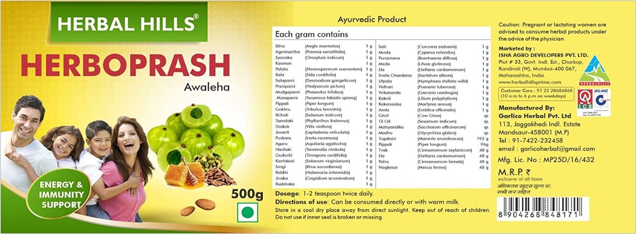 हर्बल हिल्स हर्बो प्राश अवलेहा, प्रतिरक्षा के लिए प्राकृतिक आयुर्वेदिक च्यवनप्राश हर्बोप्राश, ठंडी सूखी जगह में 500 ग्राम स्टोर करें