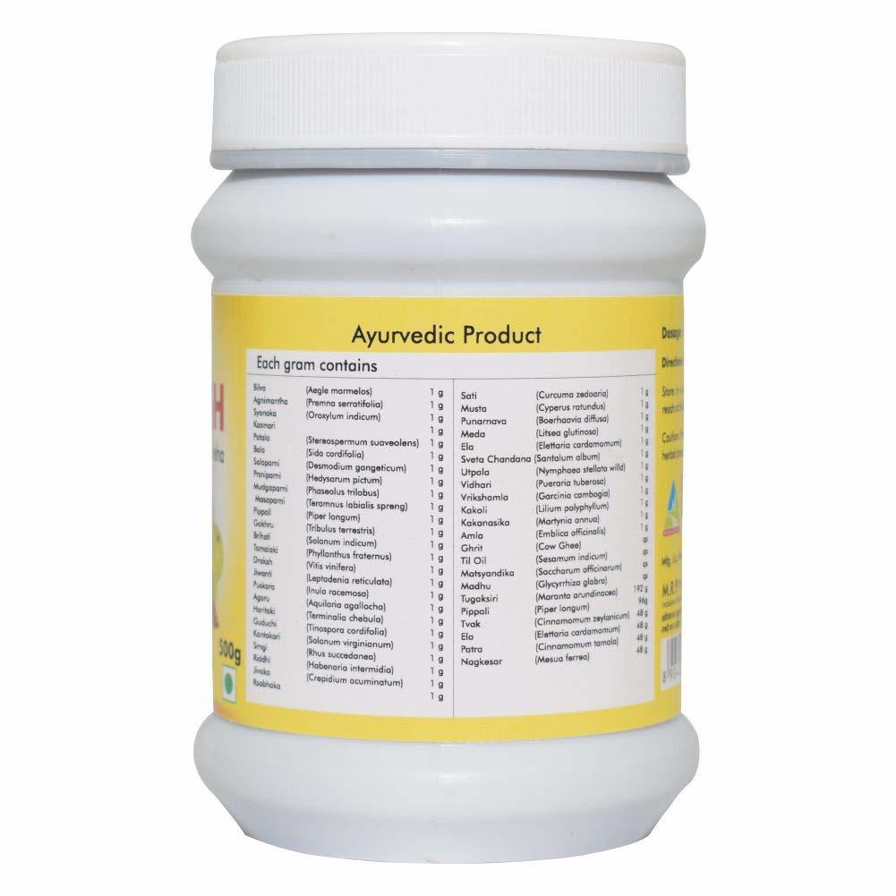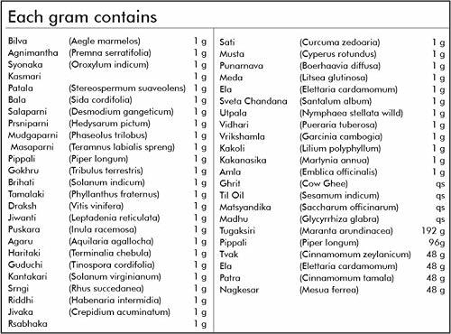 सामग्रियां | 47 herbs such as Amla, Bilva, Haritaki, Punarnava, Guduchi etc. |