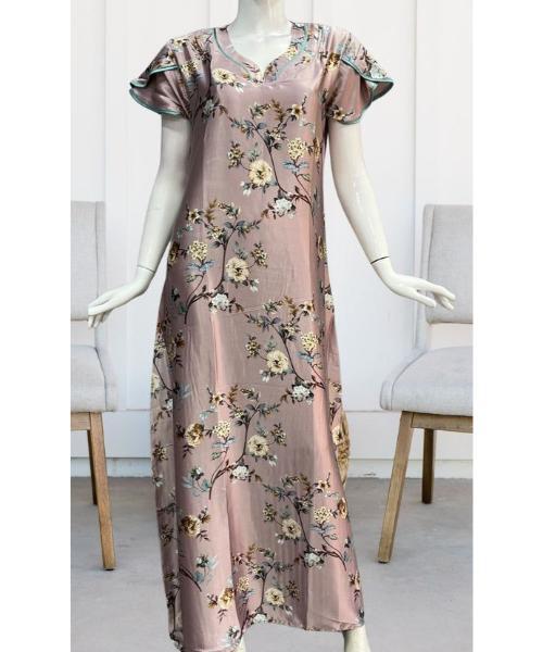 उच्च गुणवत्ता वाले साटन कपड़े और सुरुचिपूर्ण फूलों के प्रिंट का रात