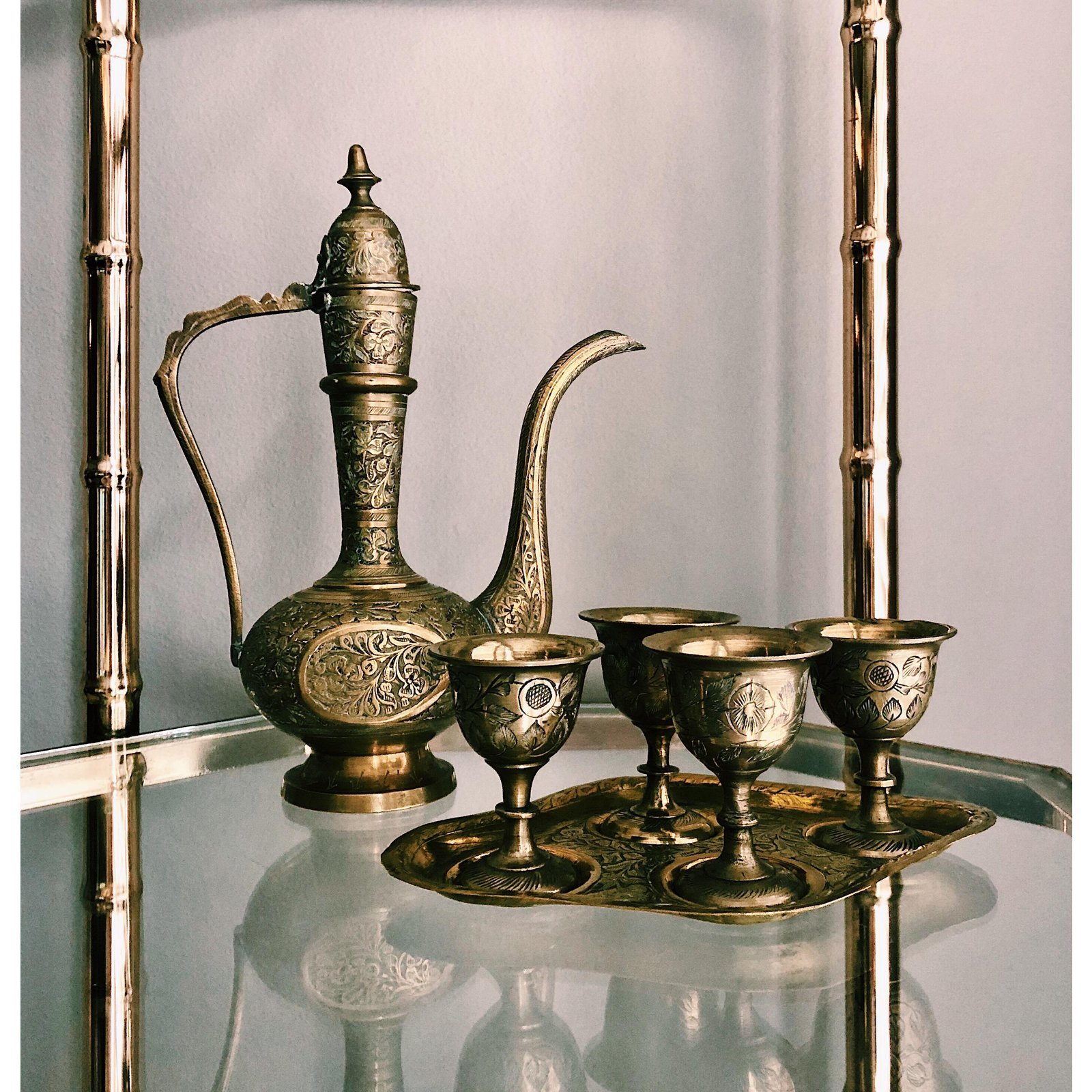 Explore in english - Hollywood Regency Six Piece Etched Brass Dallah