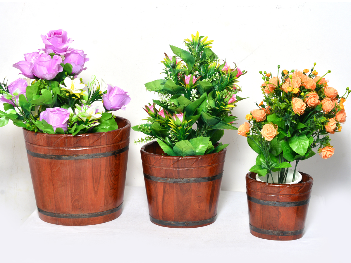 Explore in english - Home Decorative Gift Purpose Wooden Oval Shape Designer Flower Pot Planters