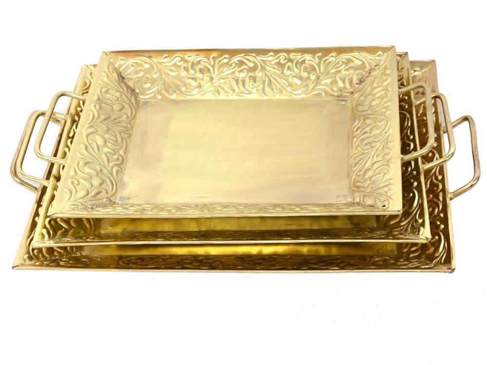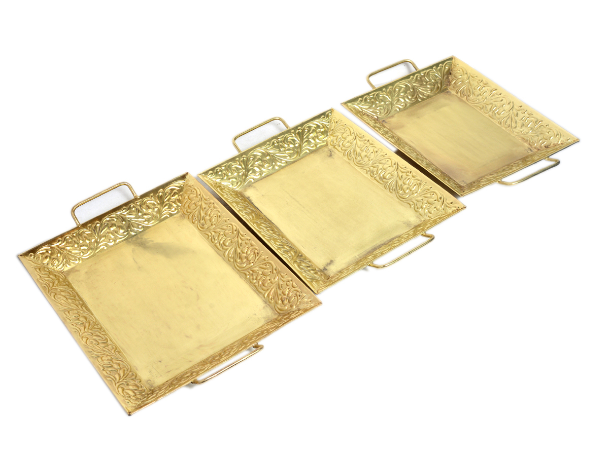 घर की सजावट के लिए भारतीय हैंडमेड आयरन कॉपर ट्रे सेट