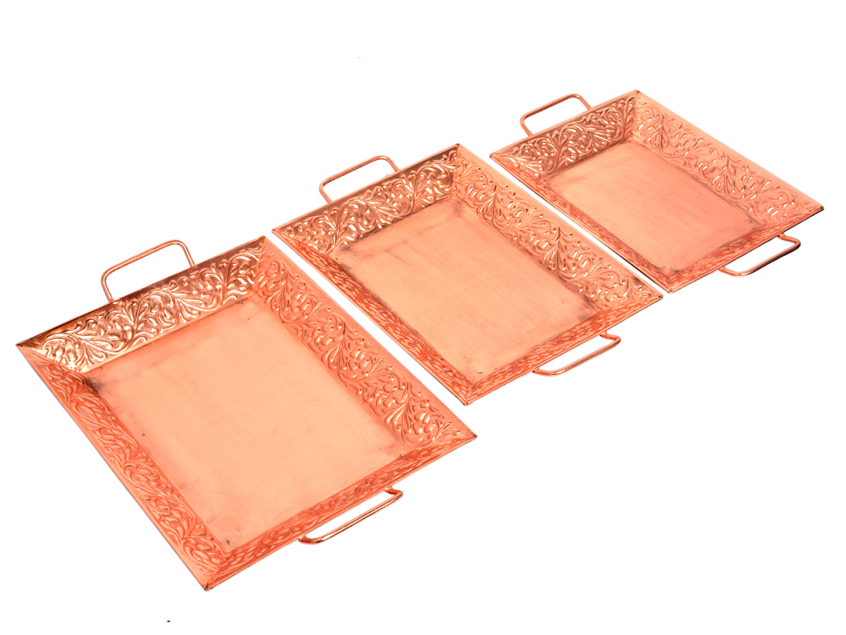 रेक्टेंगल होम डेकोरेटिव इंडियन हैंडमेड आयरन कॉपर ट्रे सेट