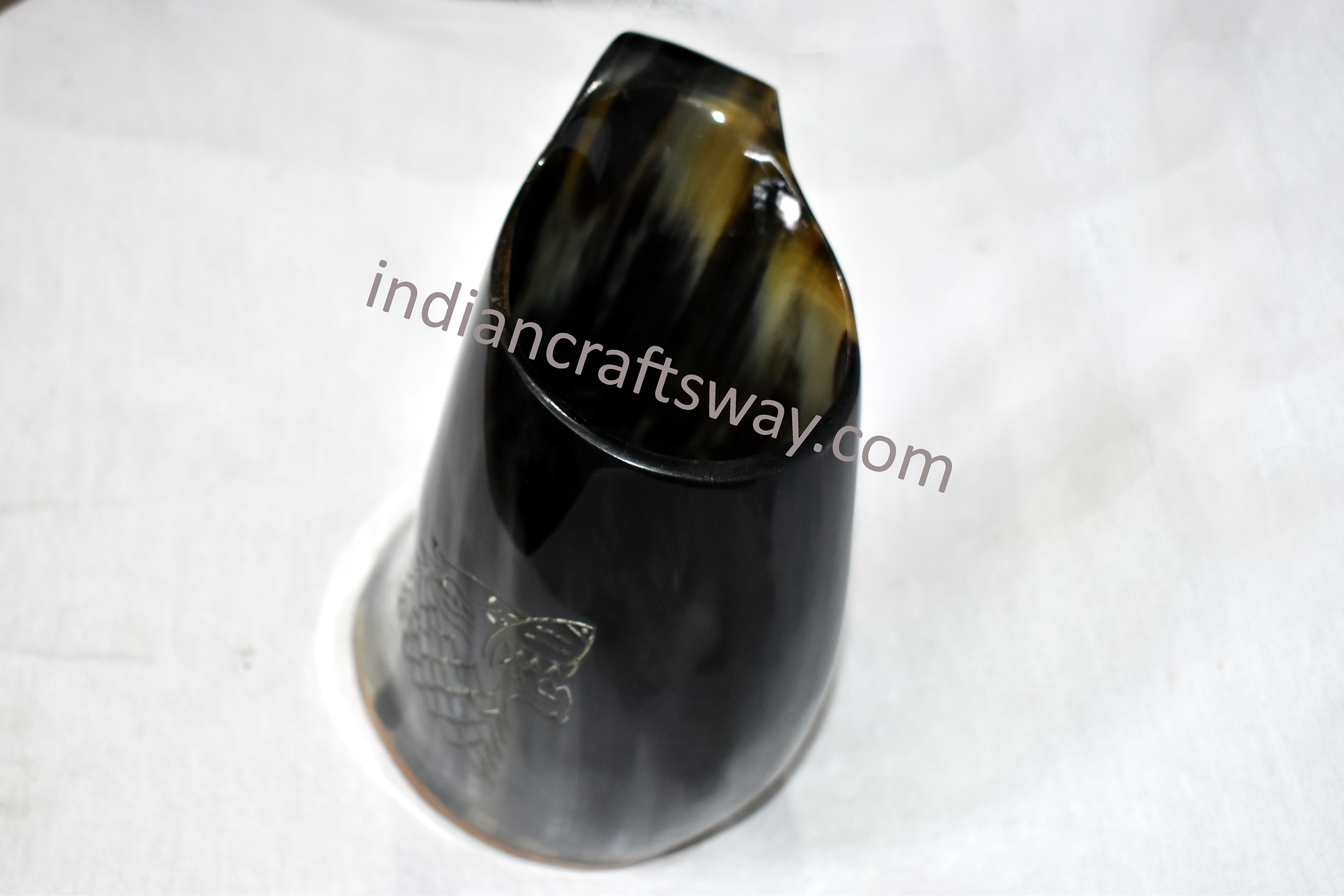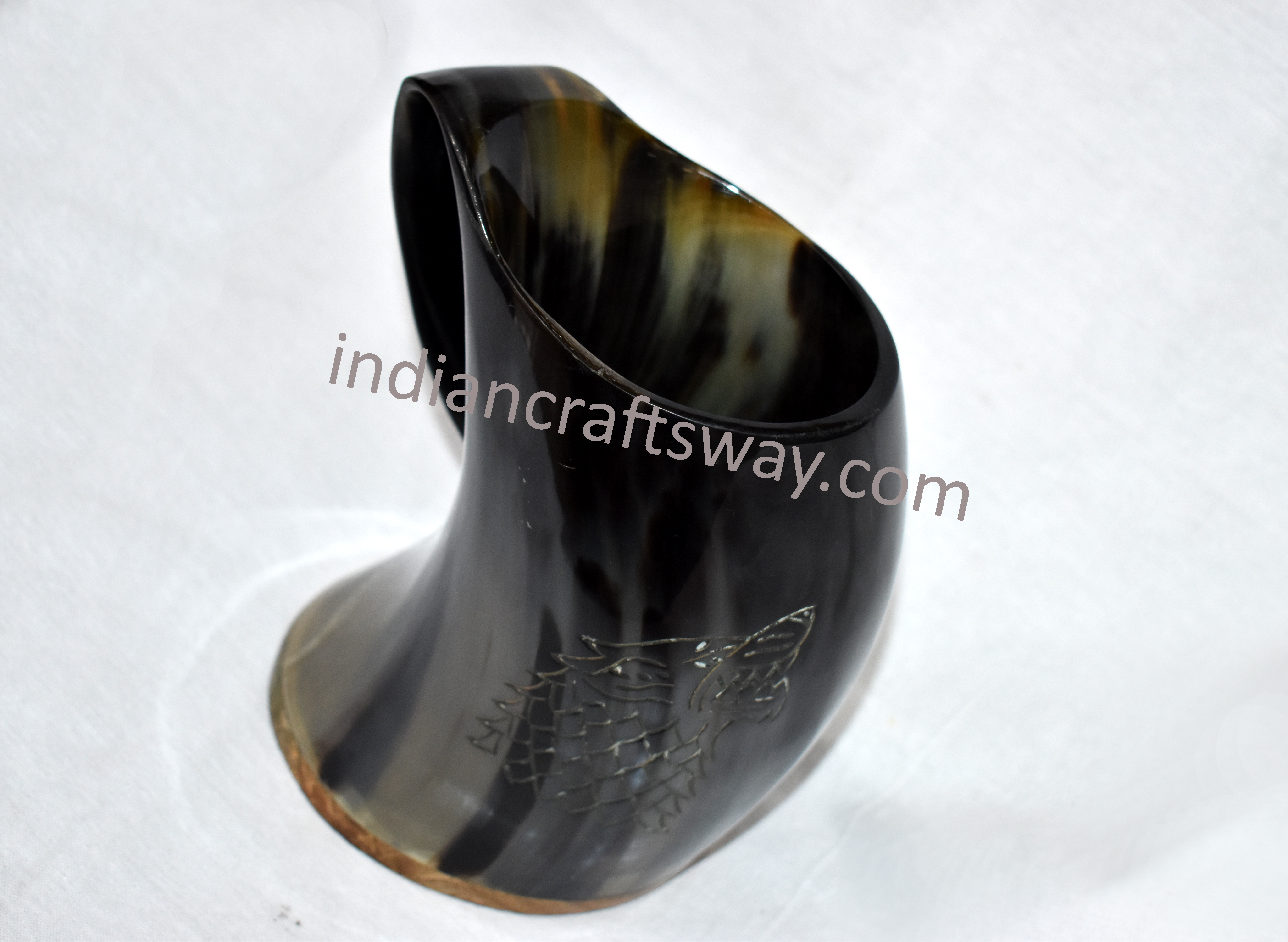 | डिज़ाइन | Horn mug wolf design with wooden base |