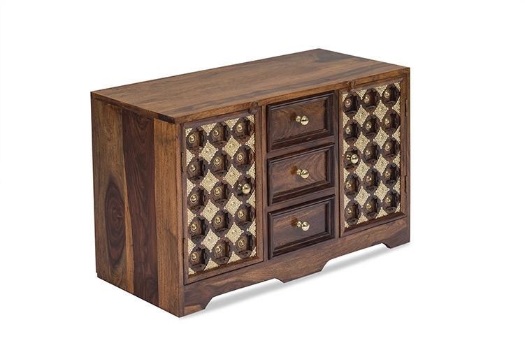 पैशन महोगनी फ़िनिश में हैंडक्राफ़्टेड कंसोल टेबल