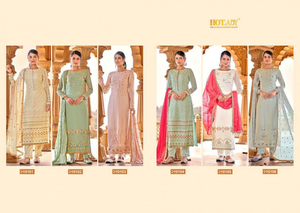 हॉटलेडी अलंकार 10101-10106 सीरीज़ विस्कोस जॉर्जेट पार्टी वियर सूट कैटलॉग