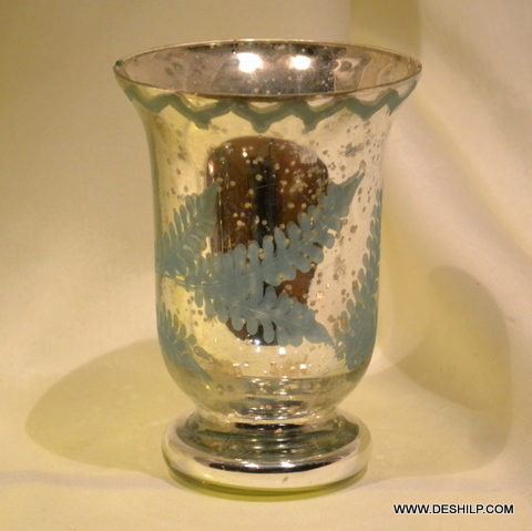 ग्लास हरिकेन सिल्वर टी-लाइट कैंडल होल्डर