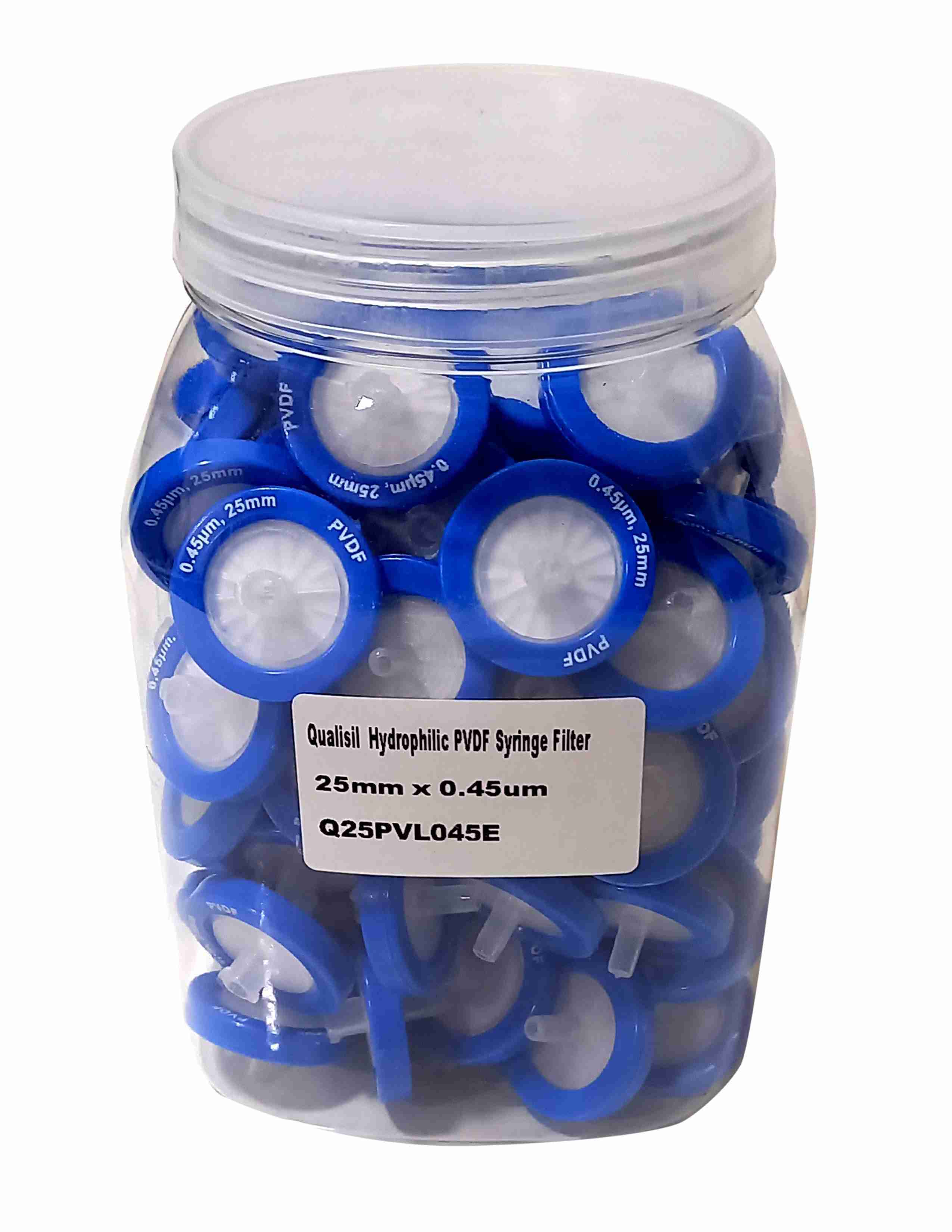 ब्लू हाइड्रोफिलिक Pvdf सिरिंज फ़िल्टर - क्वालिसिल (Q25pvl045e)