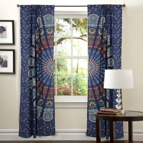 हस्तनिर्मित भारतीय मंडला नीला ओम्ब्रे हिप्पी बोहेमियन पर्दा
