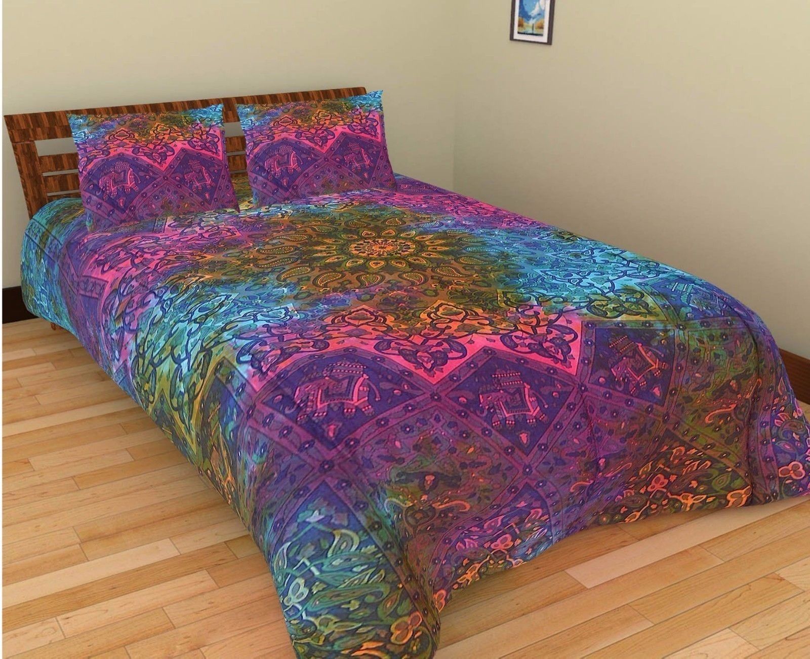 वॉशेबल इंडियन मंडला कॉटन मल्टीकलर फ्लावर एलिफेंट डुवेट कवर