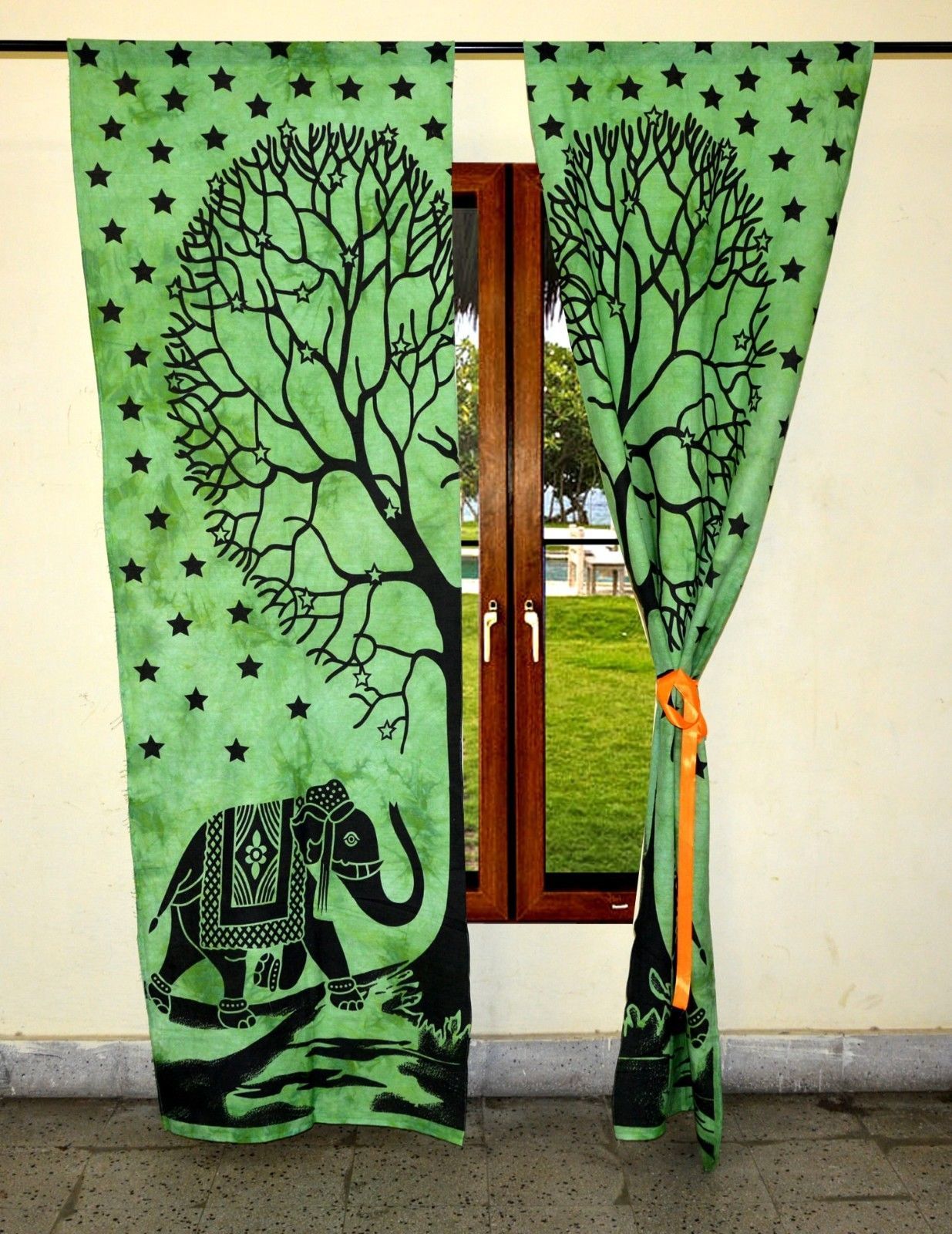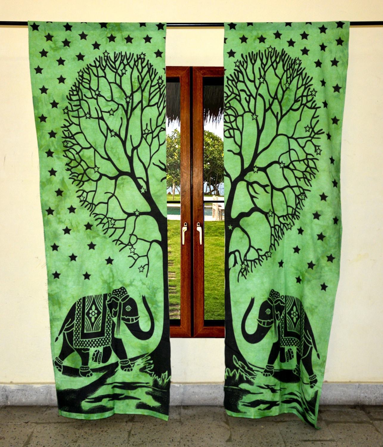 Explore in english - Indian Mandala Green Tree Elephant Ombre Hippie Bohemian Curtain