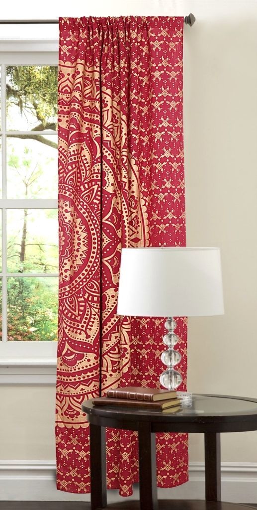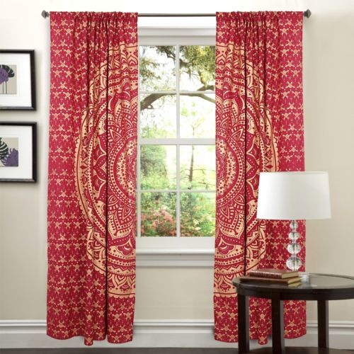 हस्तनिर्मित भारतीय मंडला रेड डाई गोल्ड ओम्ब्रे हिप्पी बोहेमियन पर्दा