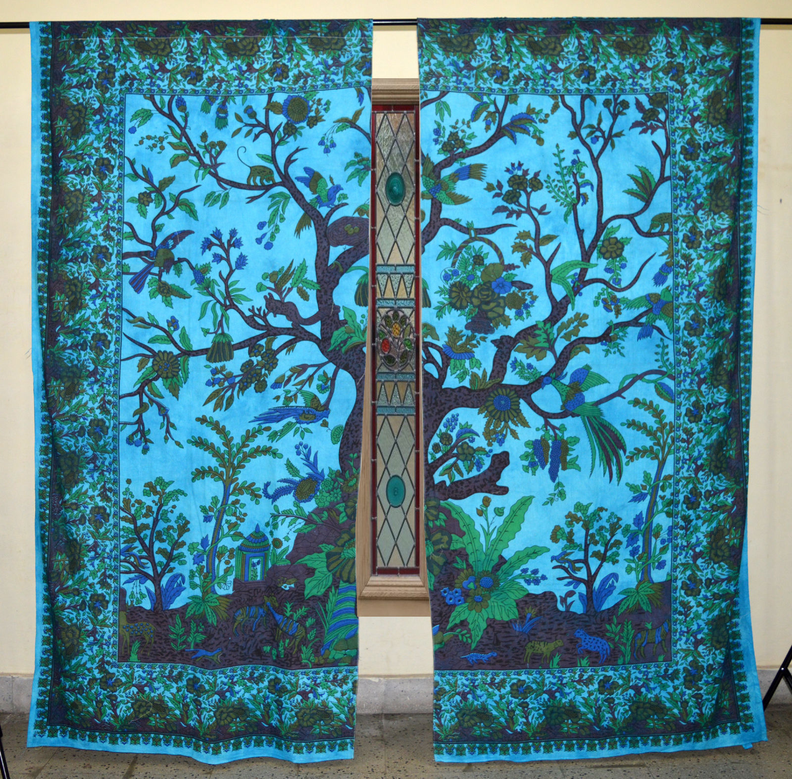 हस्तनिर्मित भारतीय मंडला फ़िरोज़ा ट्री ऑफ़ लाइफ ओम्ब्रे हिप्पी बोहेमियन कर्टन
