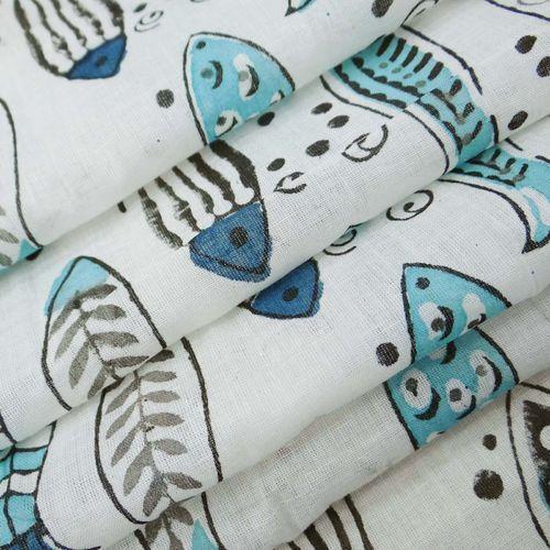 वॉशेबल इंडिगो ब्लू टोटा एनिमल बर्ड ब्लॉक डबू प्रिंट वेजिटेबल कलर कॉटन फैब्रिक