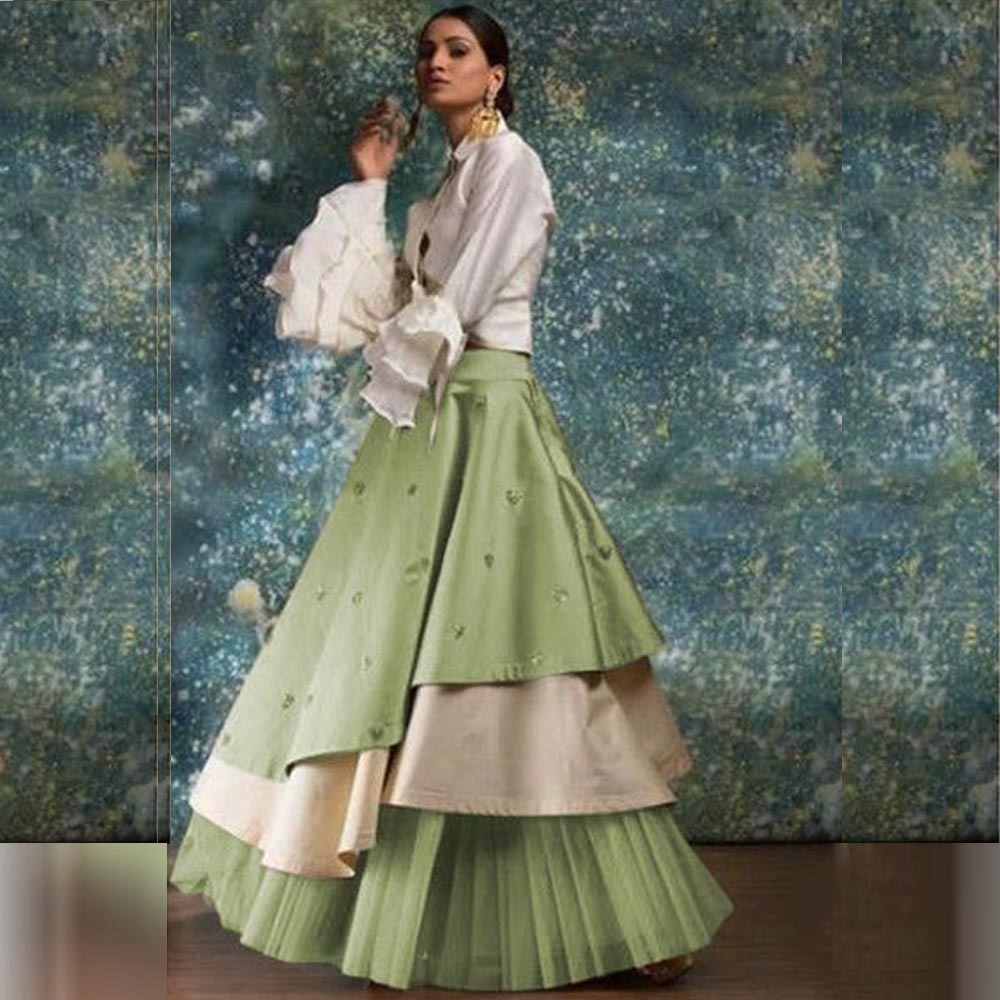 ग्रीन क्रीम इंडोवेस्टर्न ड्रेसेस