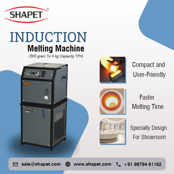 इंडक्शन बेस्ड सिल्वर मेल्टिंग मशीन 250 ग्राम। सिंगल फेज पावर में: 4 वाट (W)