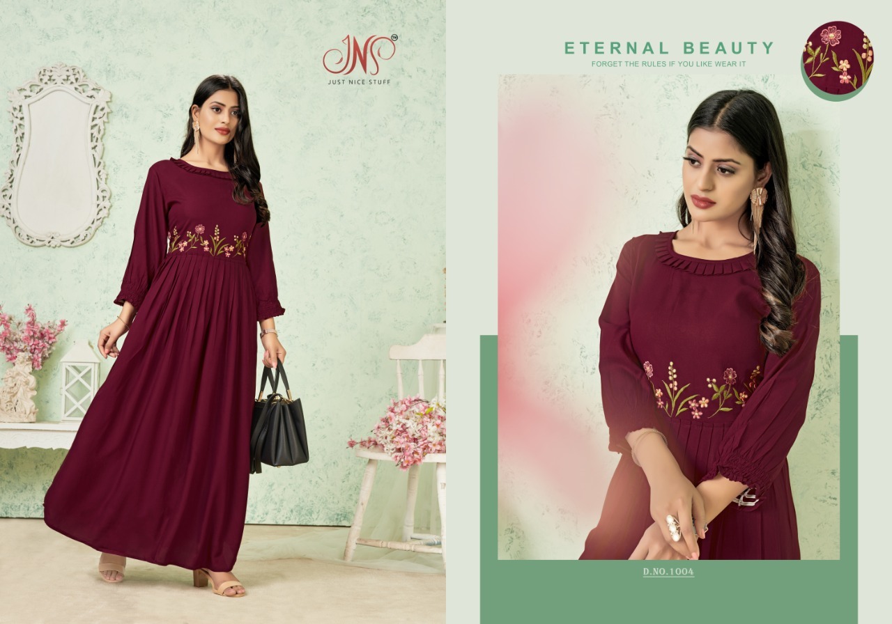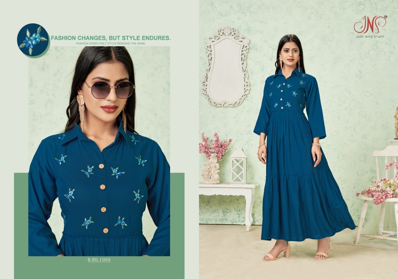 Explore in english - Radiance Designer Party Wear Type Long Rayon Kurtis