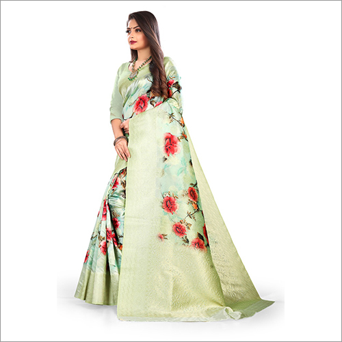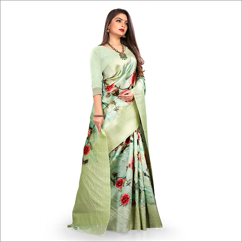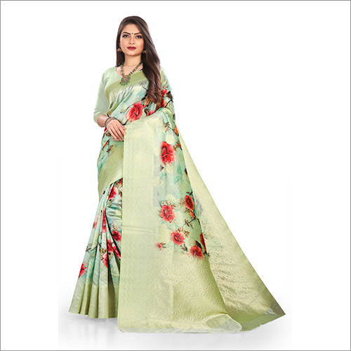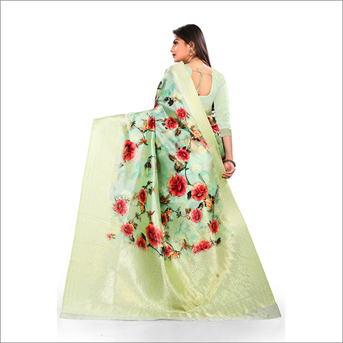 Explore in english - Innovative Green Festive Woven Jacquard Printed Saree