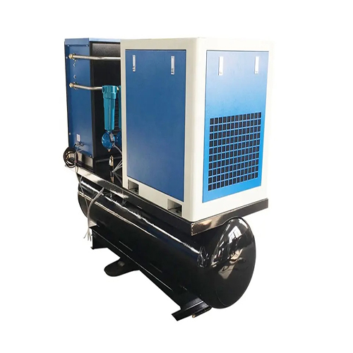 ब्लू एंड ग्रे इंटीग्रेटेड रेफ्रिजरेटेड कंप्रेस्ड एयर ड्रायर 4 व्हील्स एयर टैंक स्क्रू एयर कंप्रेसर पोर्टेबल
