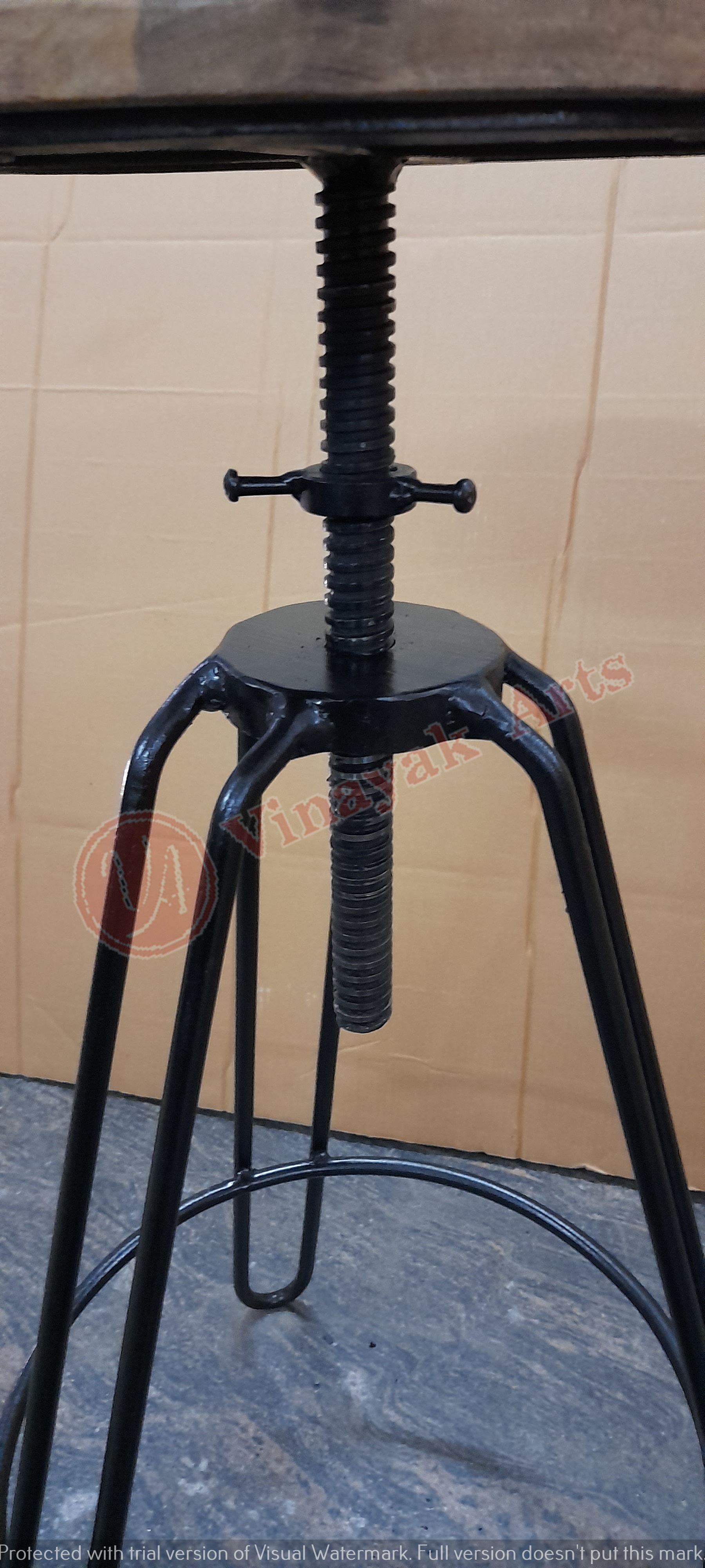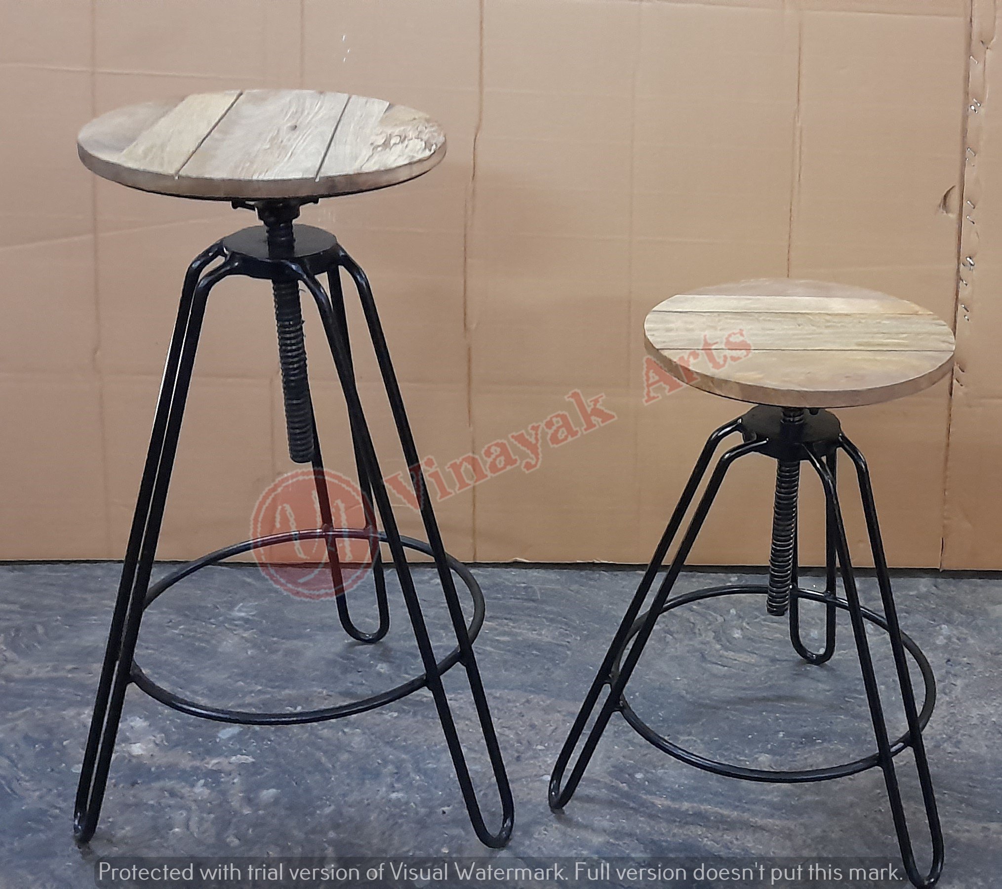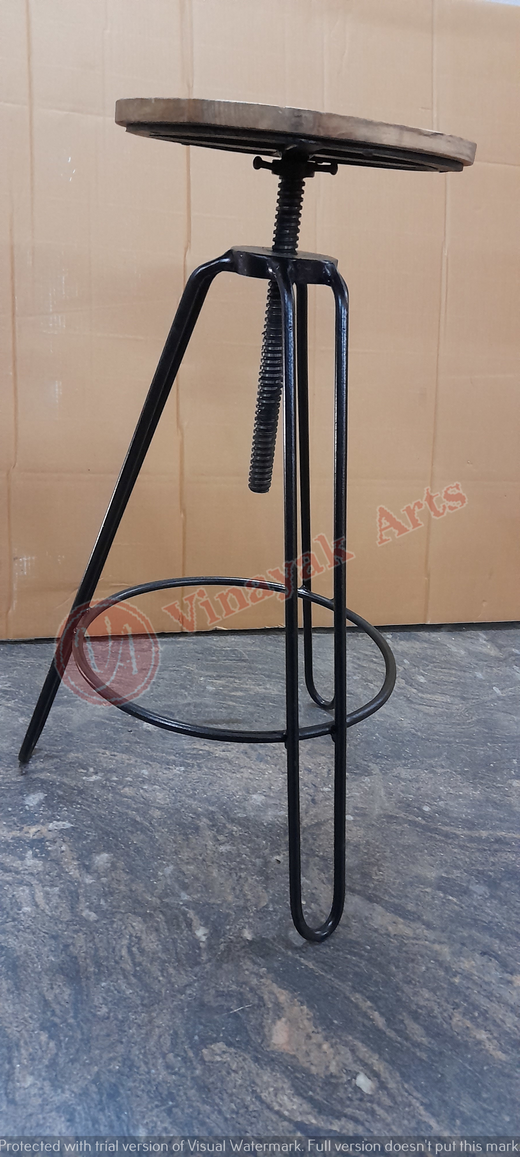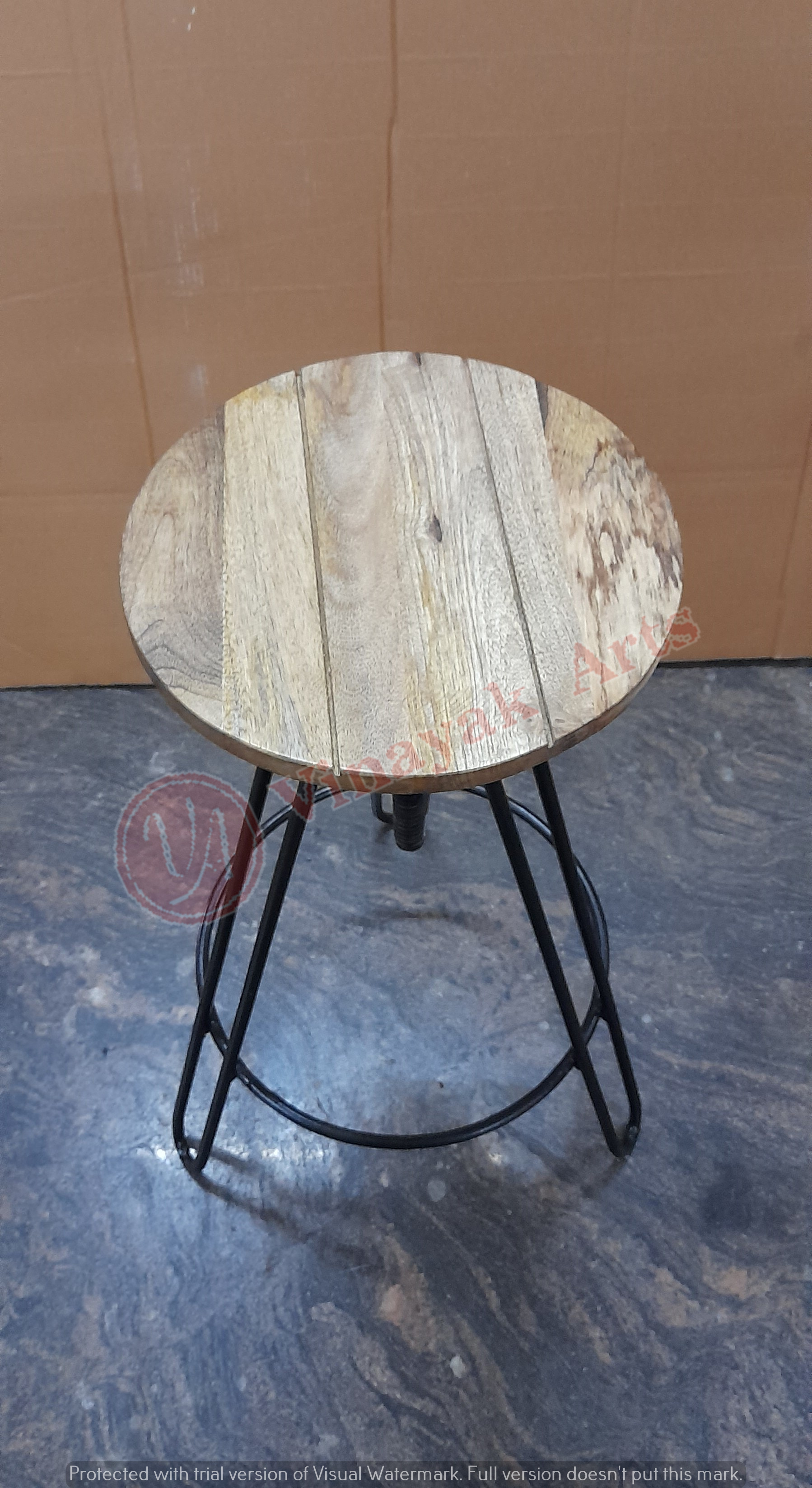 लकड़ी के टॉप के साथ हस्तनिर्मित आयरन स्टूल
