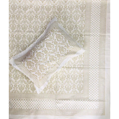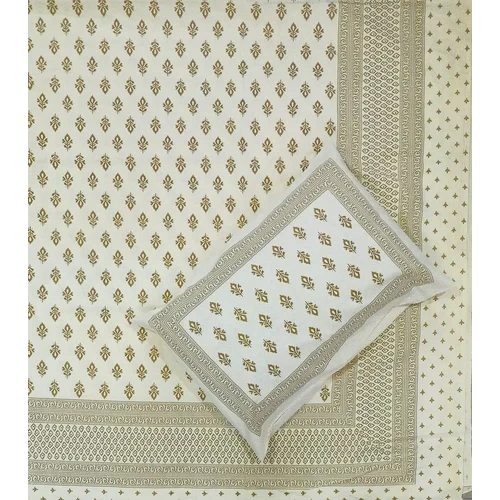 ऑफ व्हाइट-ब्राउन जयपुर बेड शीट शिमर