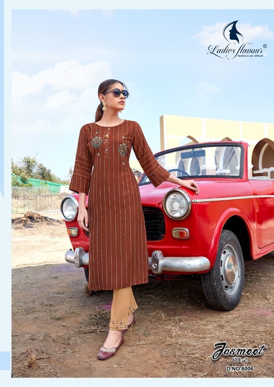 Explore in english - Jasmeet Vol 2 Designer 14 Kg Rayon Strip With Embroidery Work Kurtis