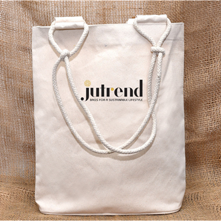 रोप हैंडल के साथ व्हाइट कैनवास शोल्डर बैग