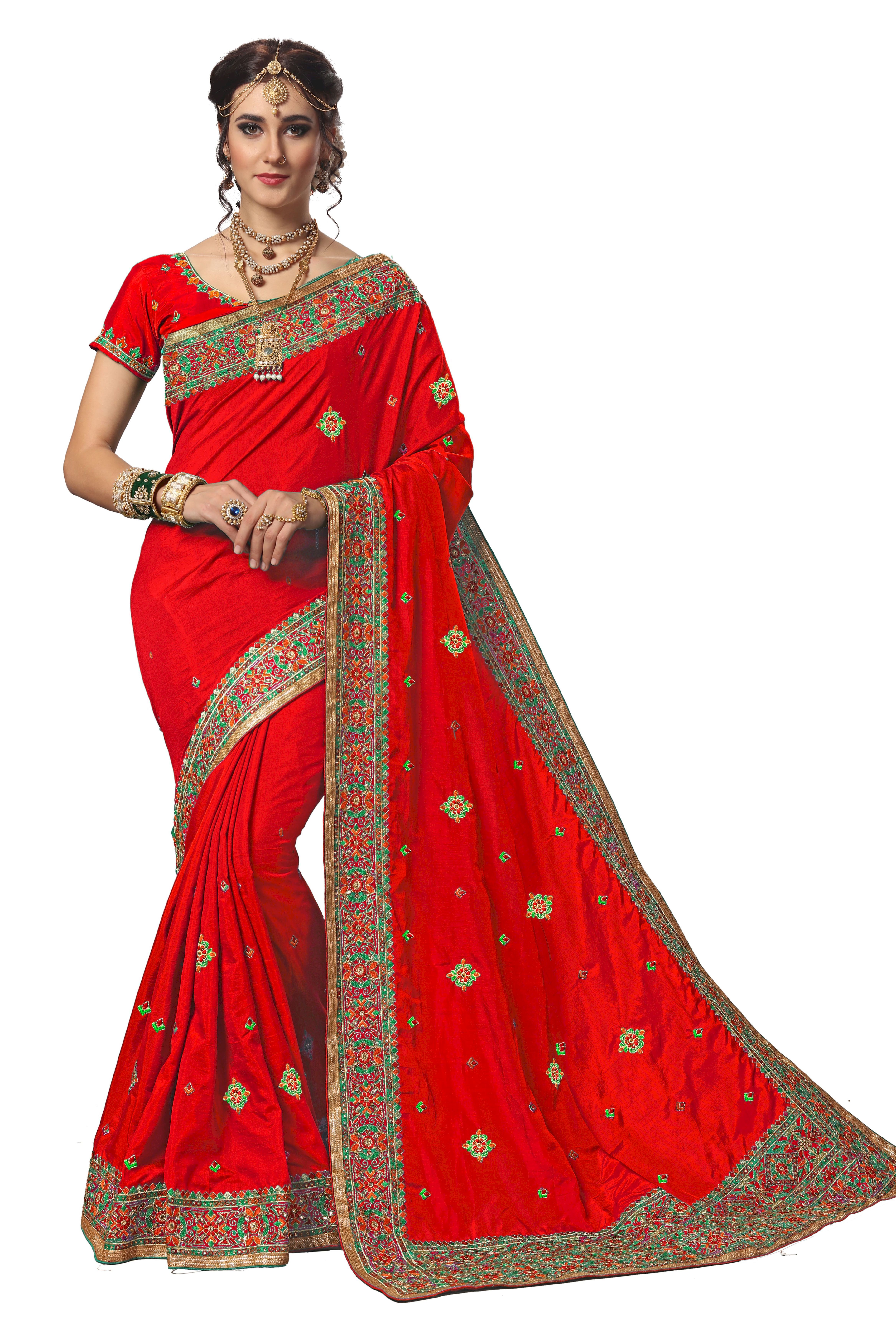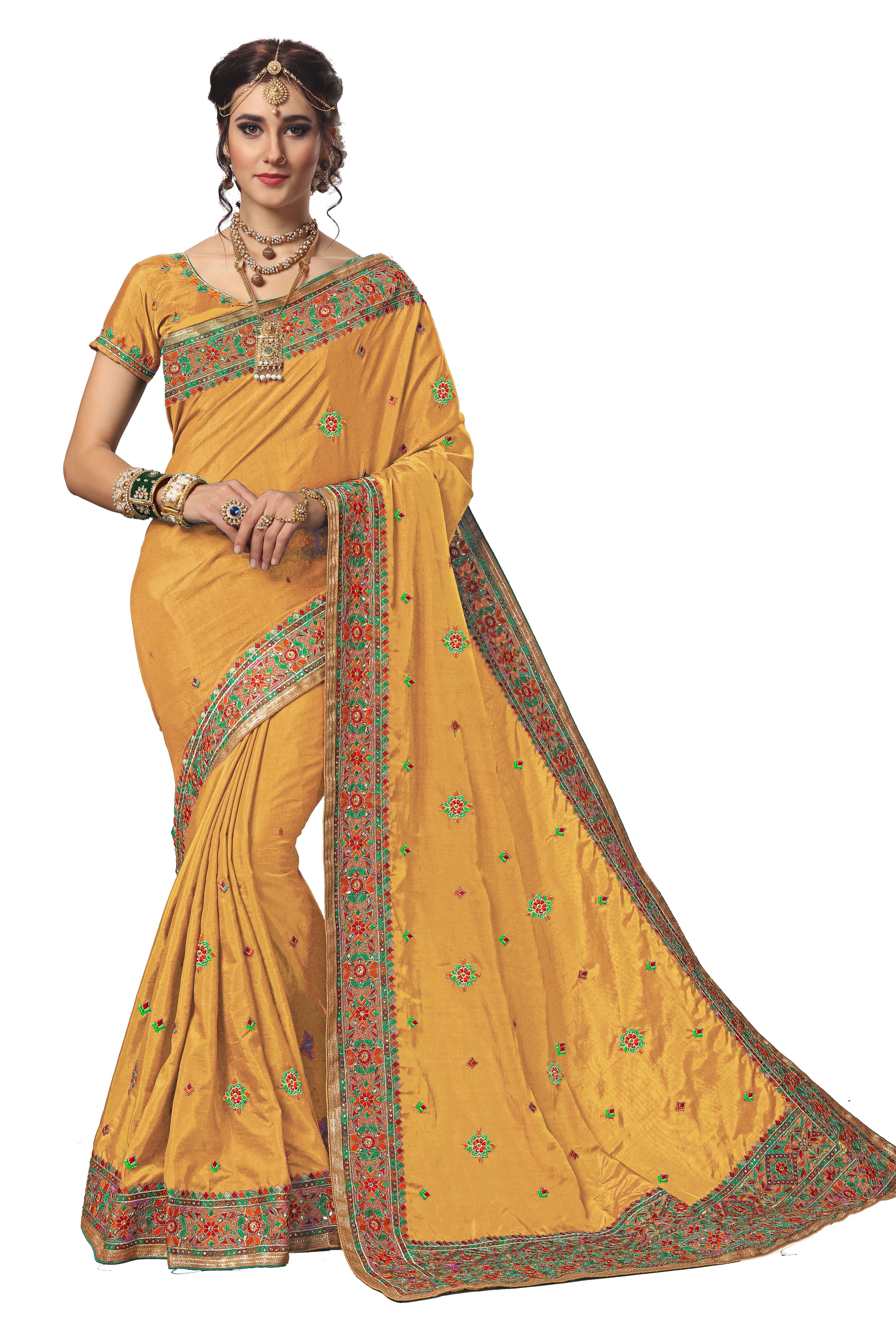 ऑरेंज कच्ची एम्ब्रॉयडरी बॉर्डर साड़ी कलेक्शन