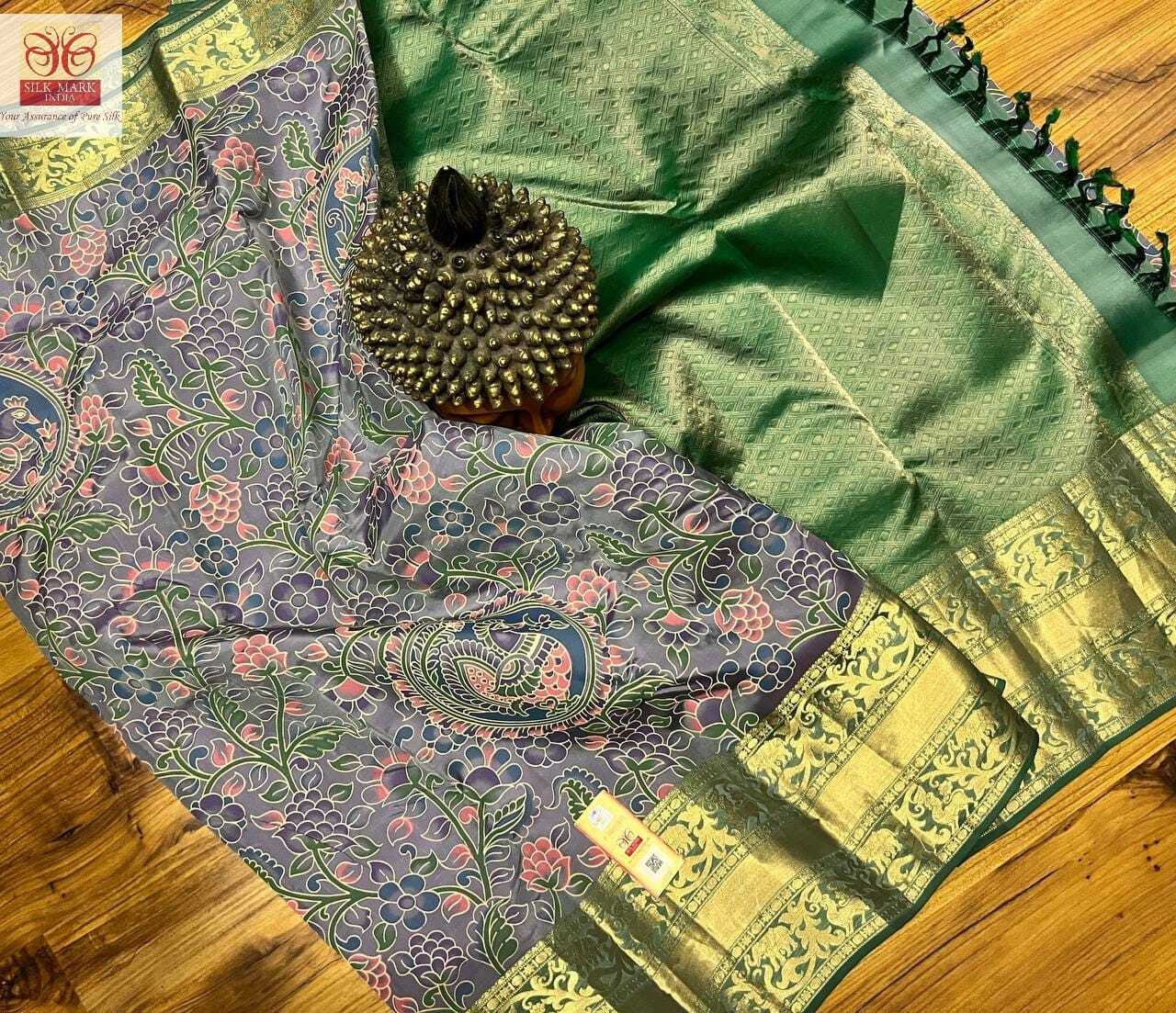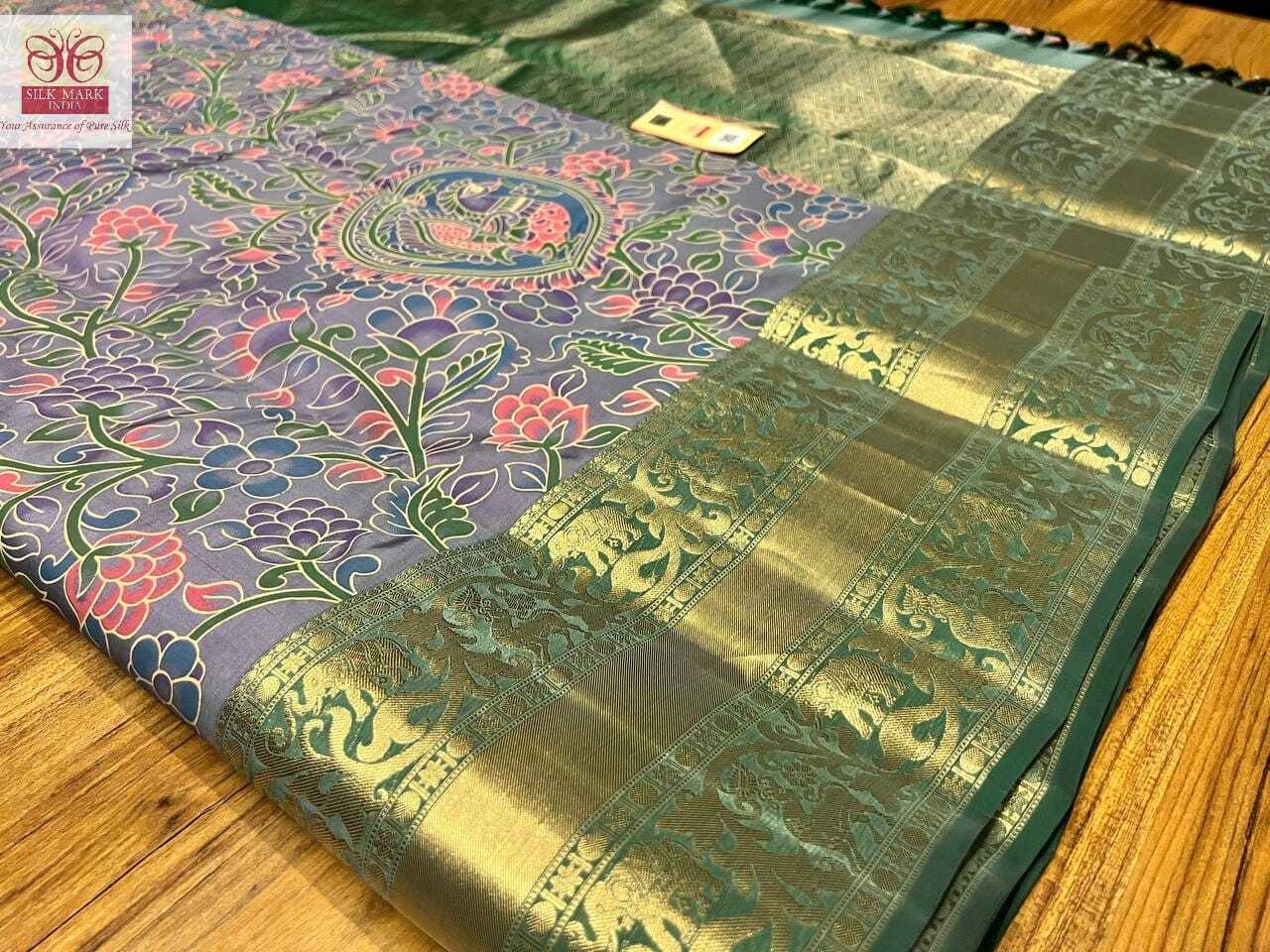 पारंपरिक कलमकारी सिल्क साड़ी शुद्ध कांजीवरम..