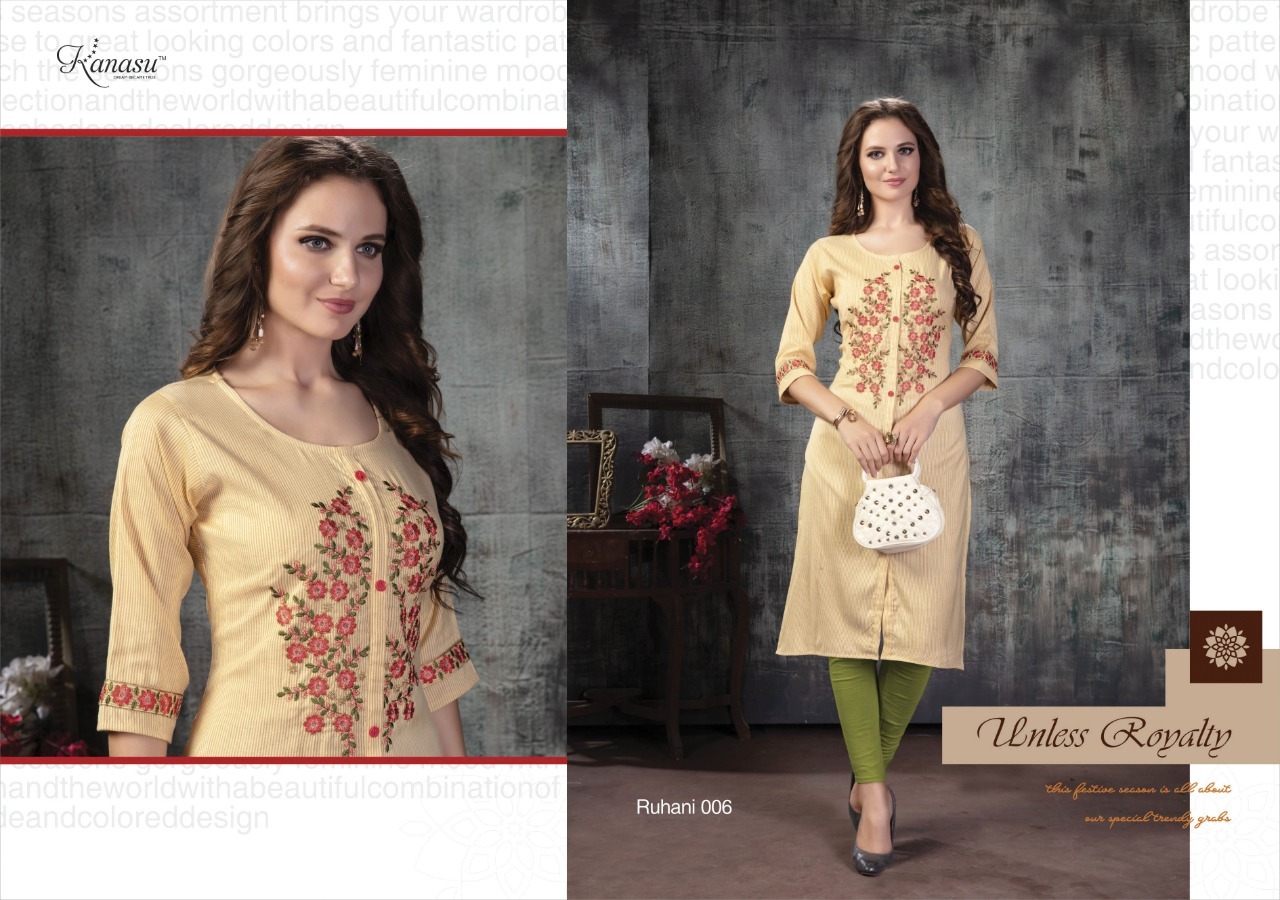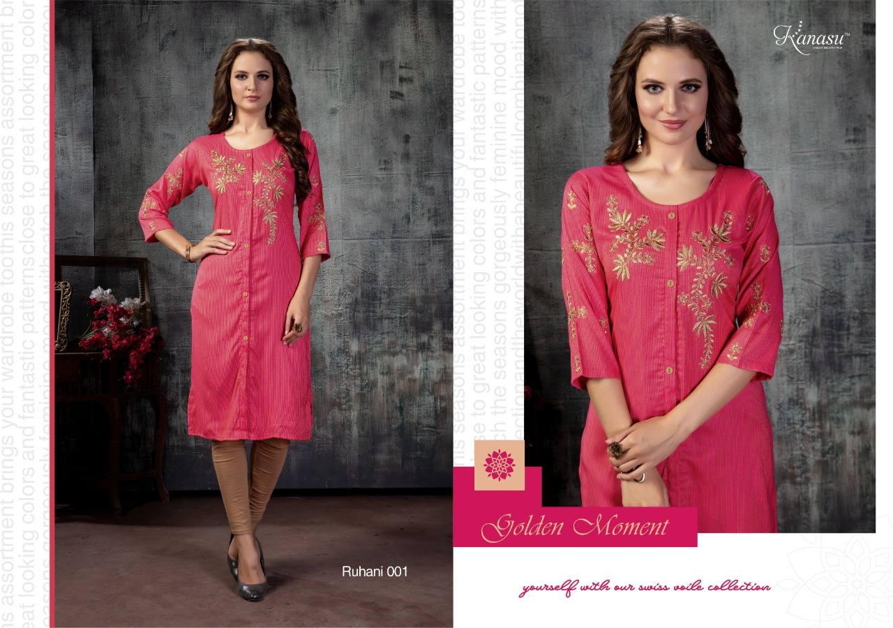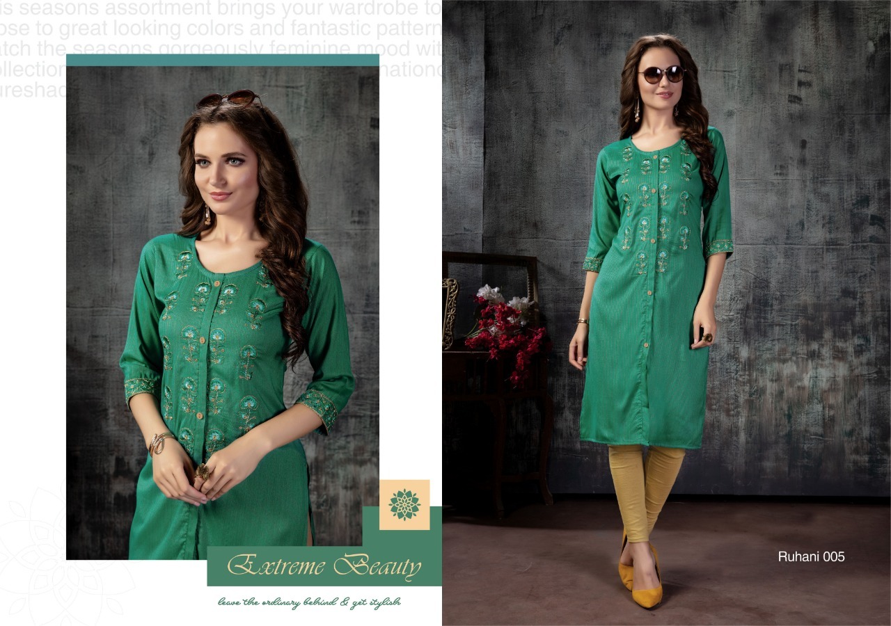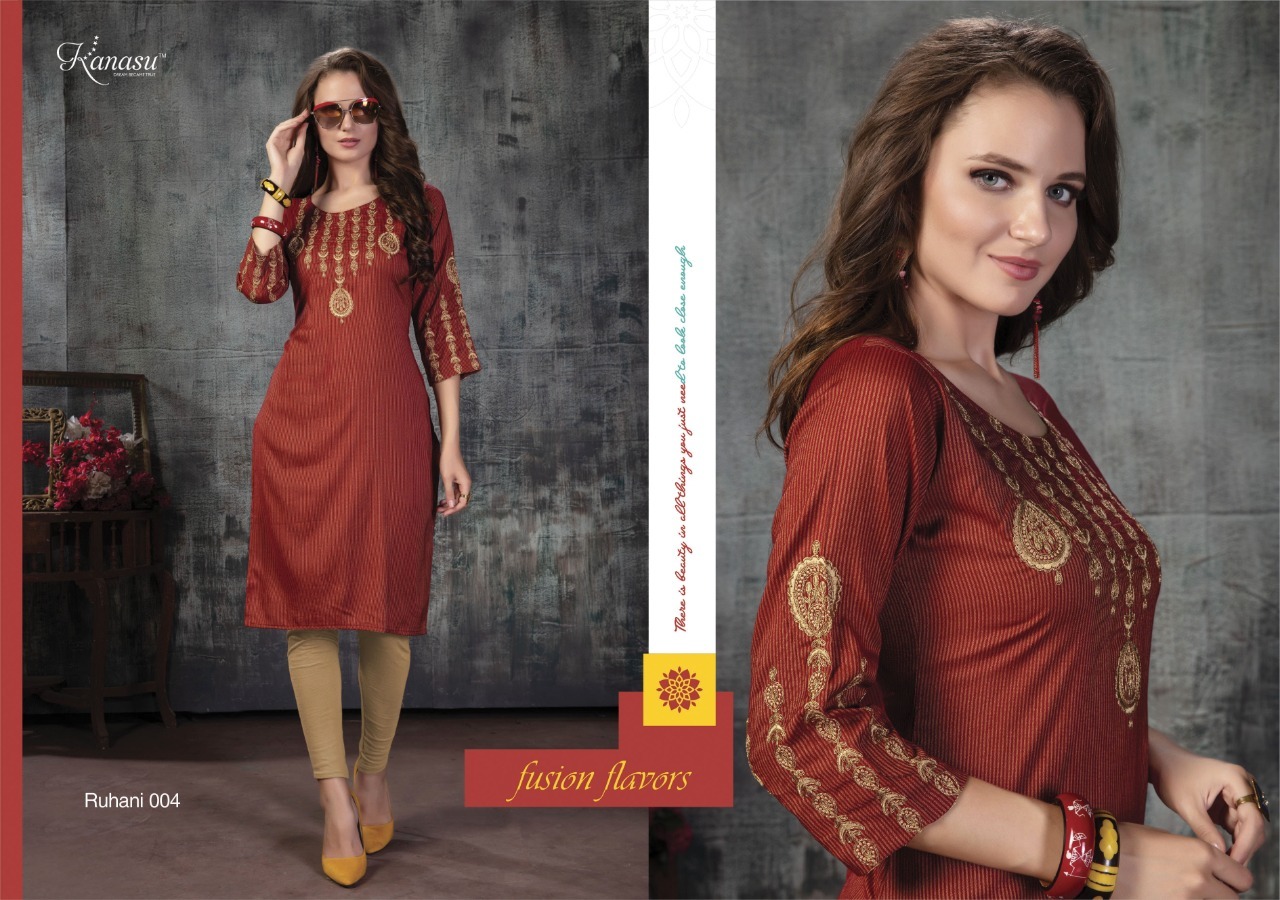 Explore in english - Kanasu Ruhani Rayon Straight With Work Designer Kurti Catalog