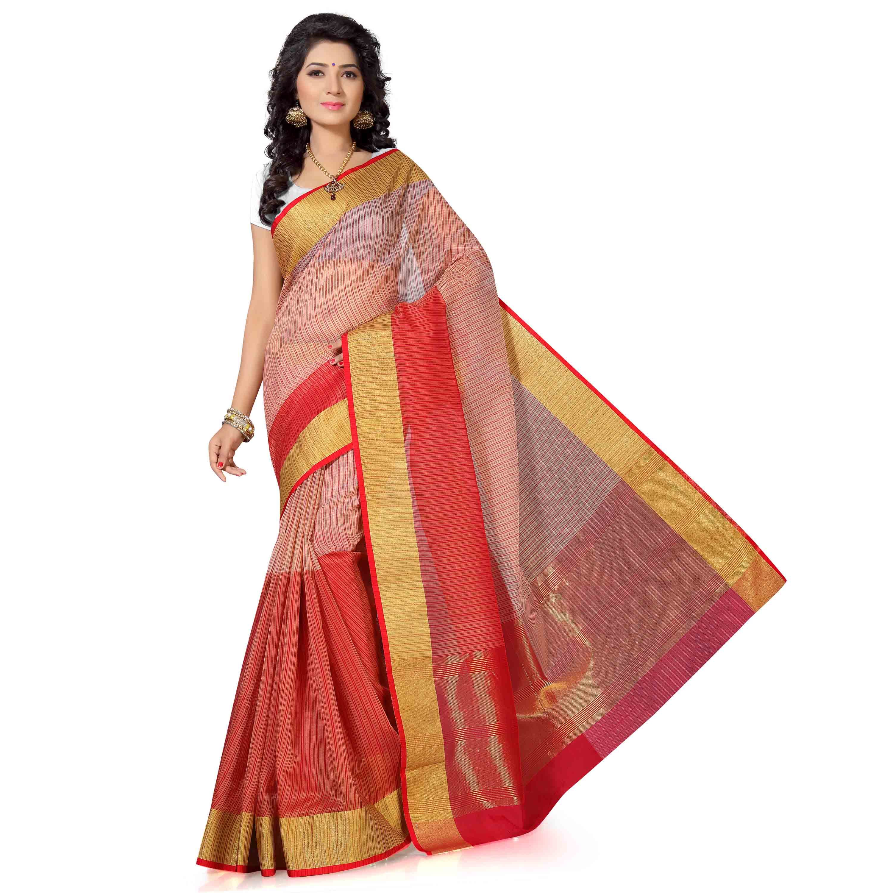 महिलाओं के लिए लाल कांचीपुरम सिल्क साड़ी के साथ पीली