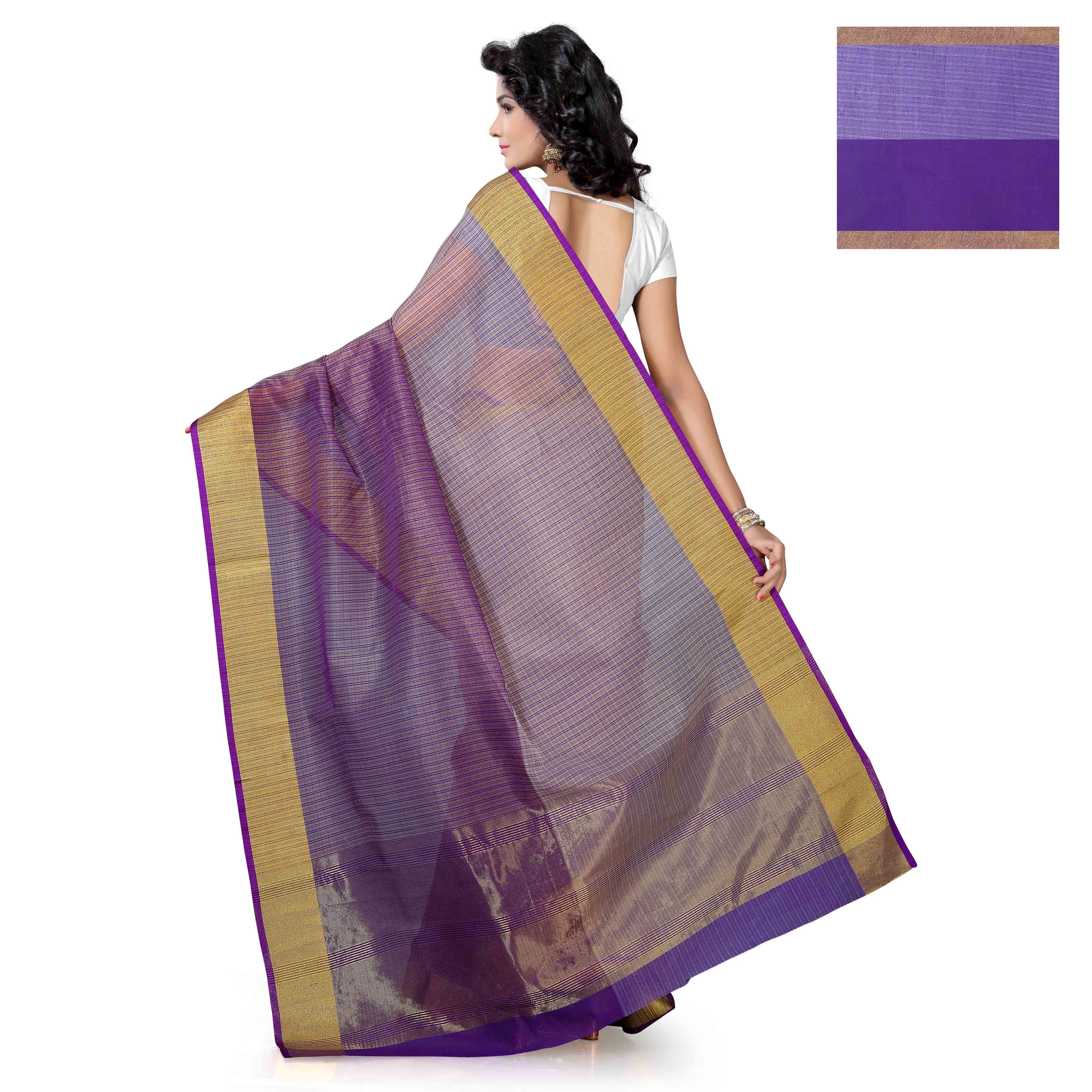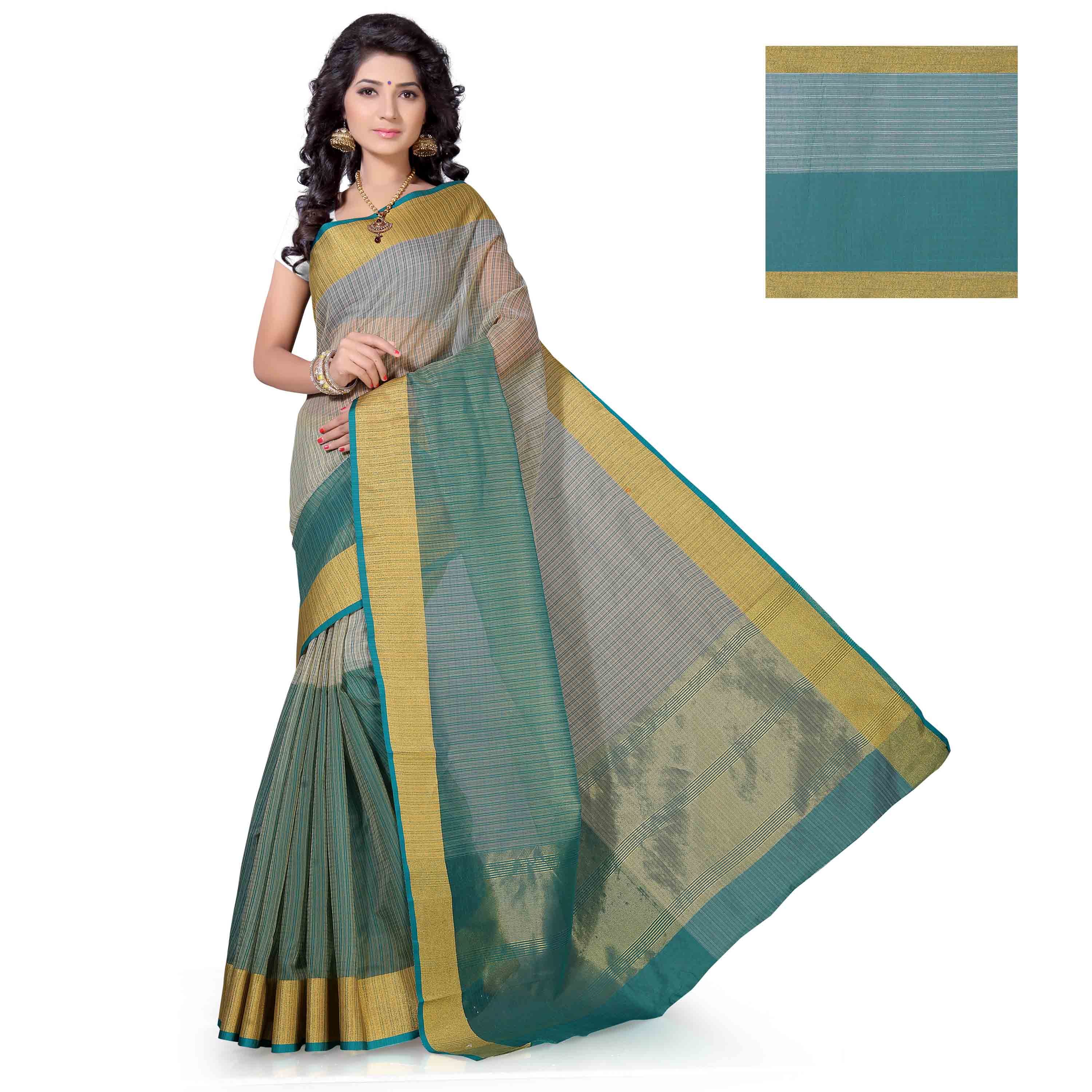 शिफॉन कांचीपुरम मुंगी चेक हाफ एंड हाफ पॉलीकॉटन साड़ी
