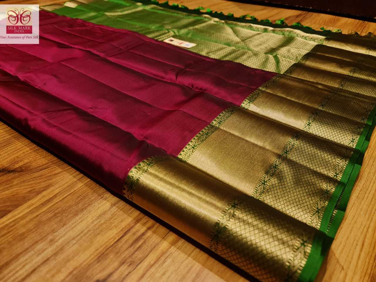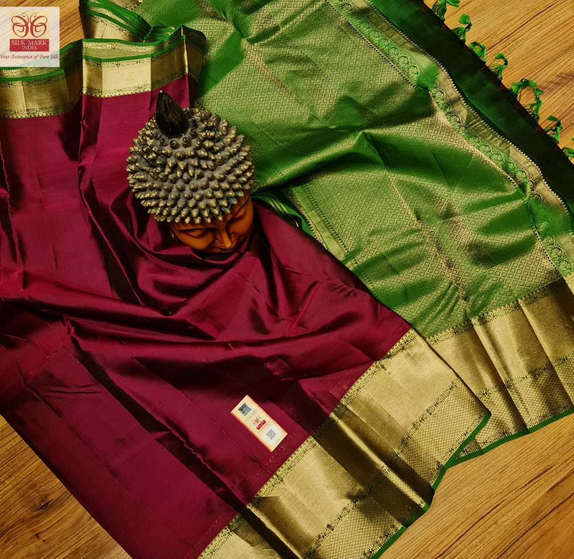 हरे कांजीवरम फैंसी सिल्क साड़ी के साथ मैरॉन