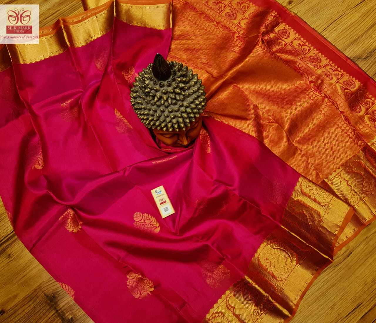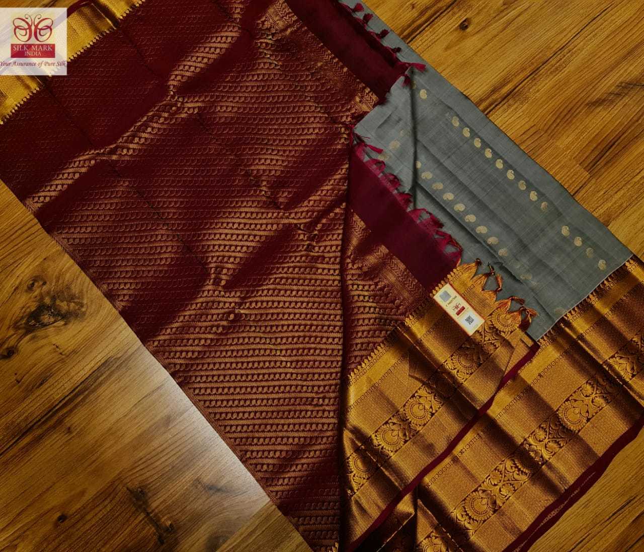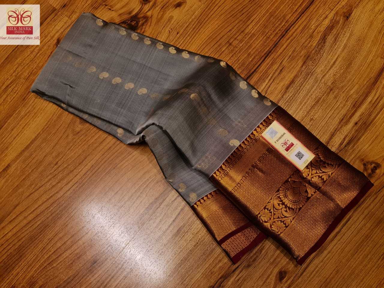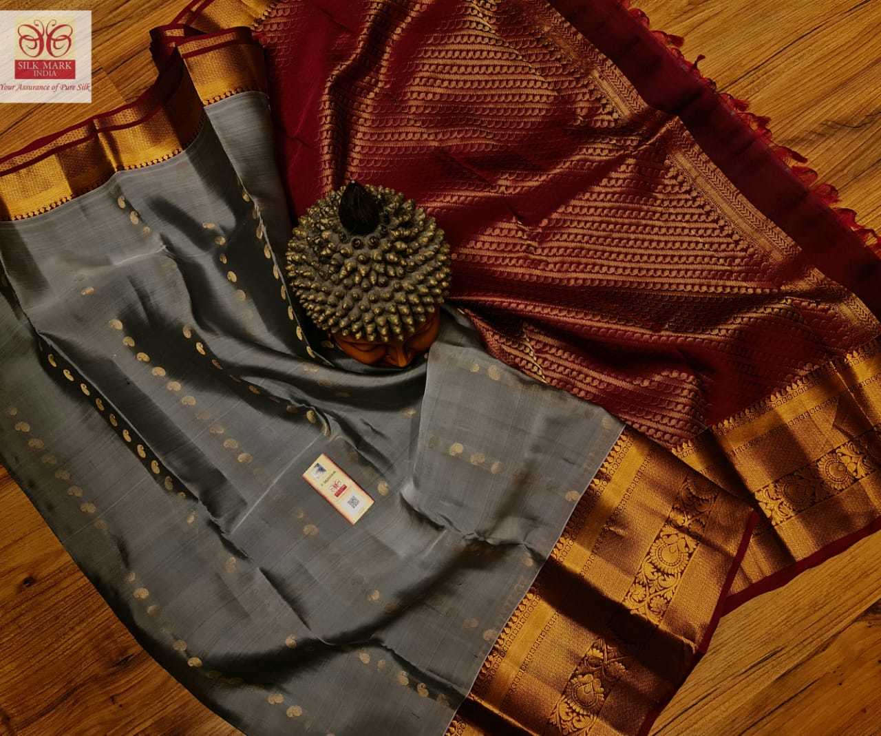 पिंक (गुलाबी) और ग्रे कांजीवरम नई पारंपरिक साड़ी