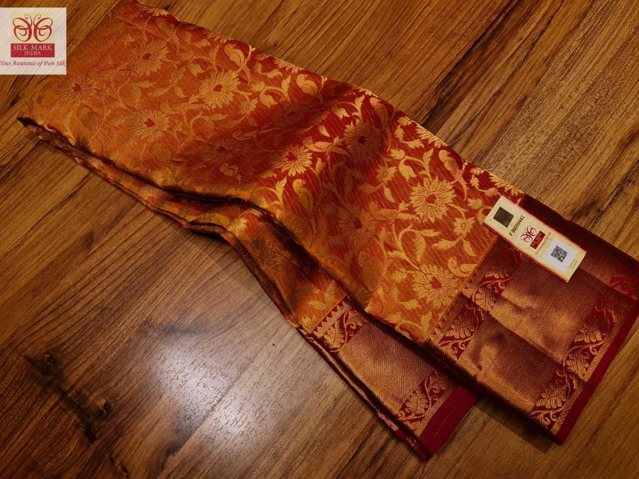 ऑरेंज कांजीवरम प्योर सिल्क साड़ी