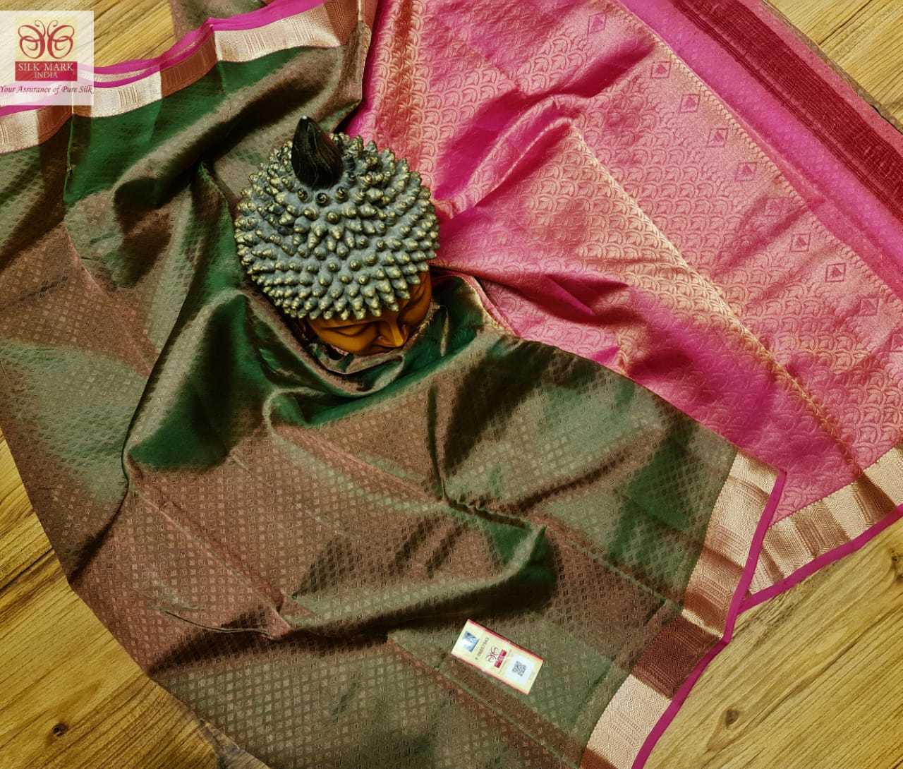 पारंपरिक कांजीवरम प्योर सिल्क साड़ी डबल शेड कलर