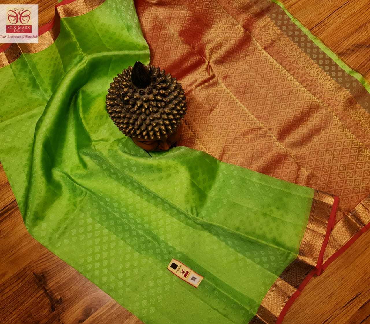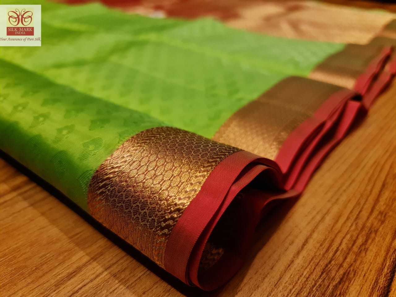 Explore in english - Kanjivaram Pure Silk Saree Green With Red