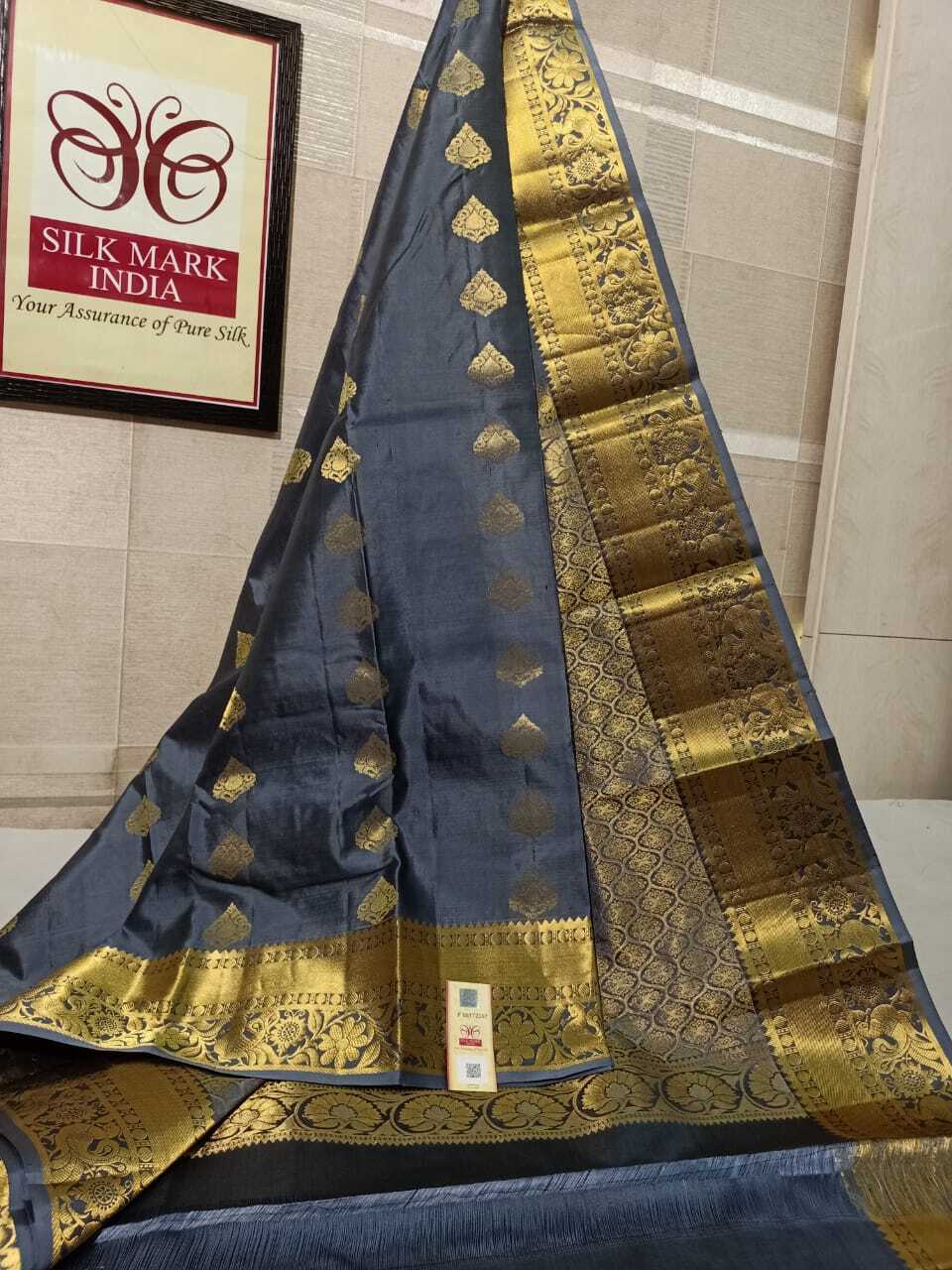 ग्रे कांजीवरम सिल्क साड़ी फैंसी मैरी बॉर्डर