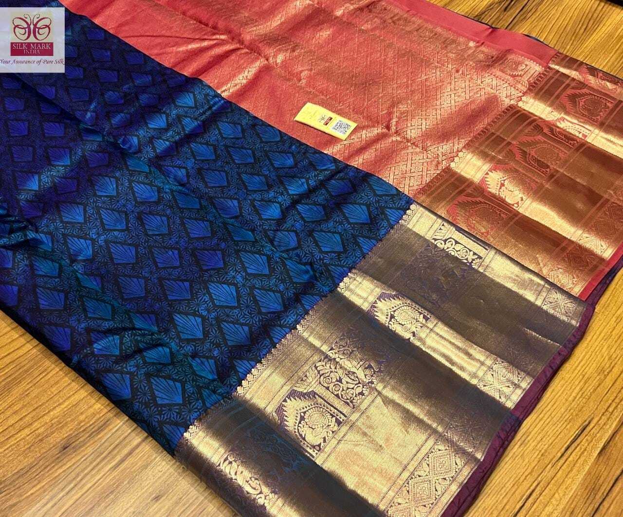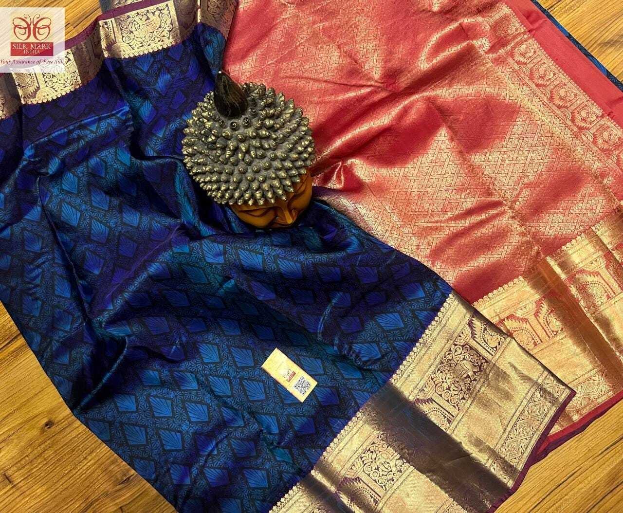 गुलाबी कांजीवरम सिल्क साड़ी के साथ नीला नई ब्रोडर साड़ी