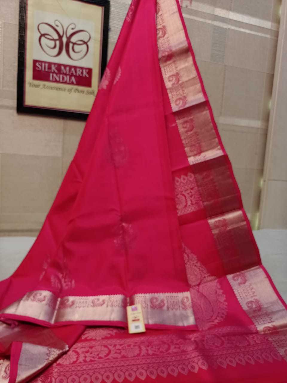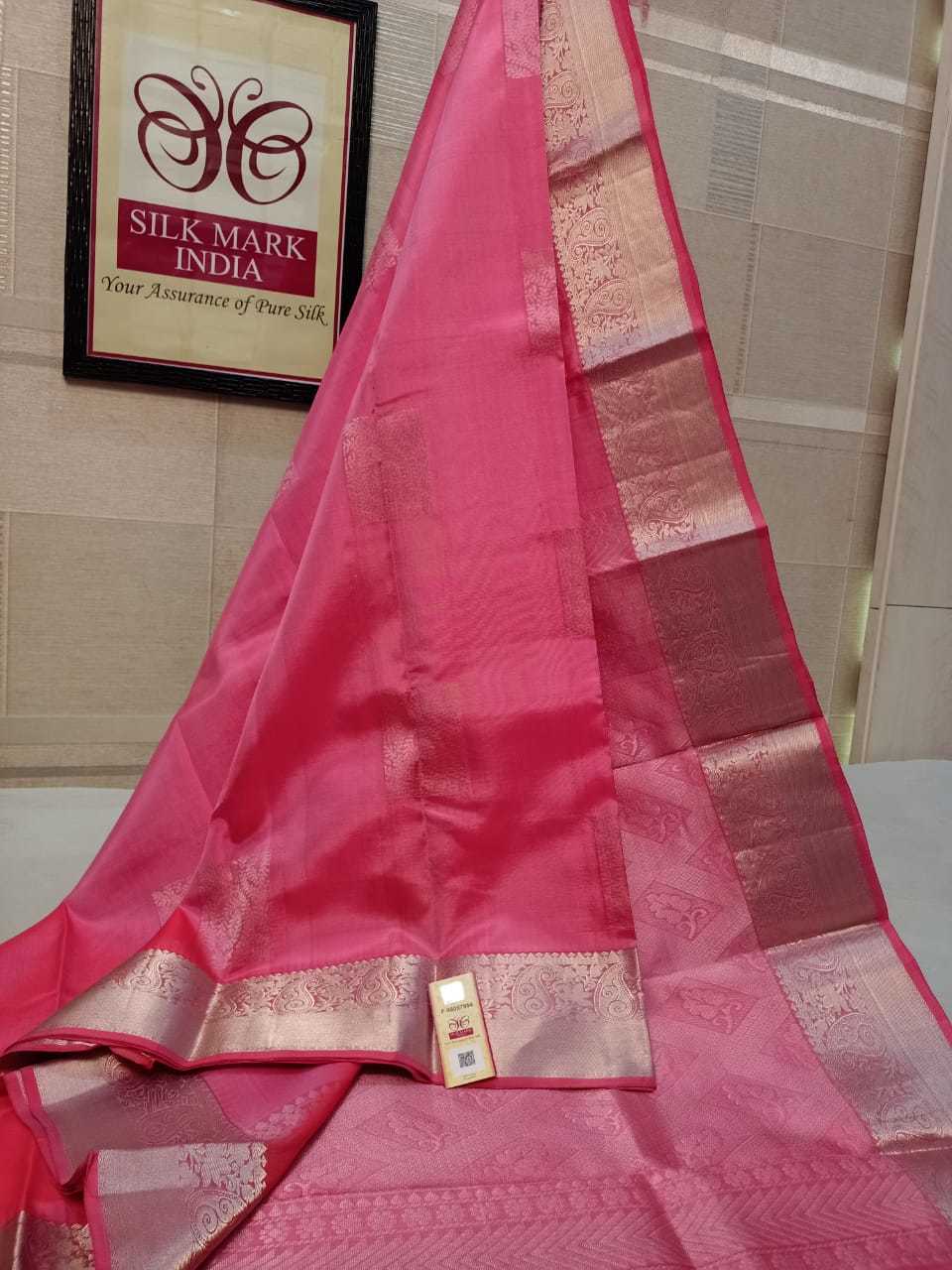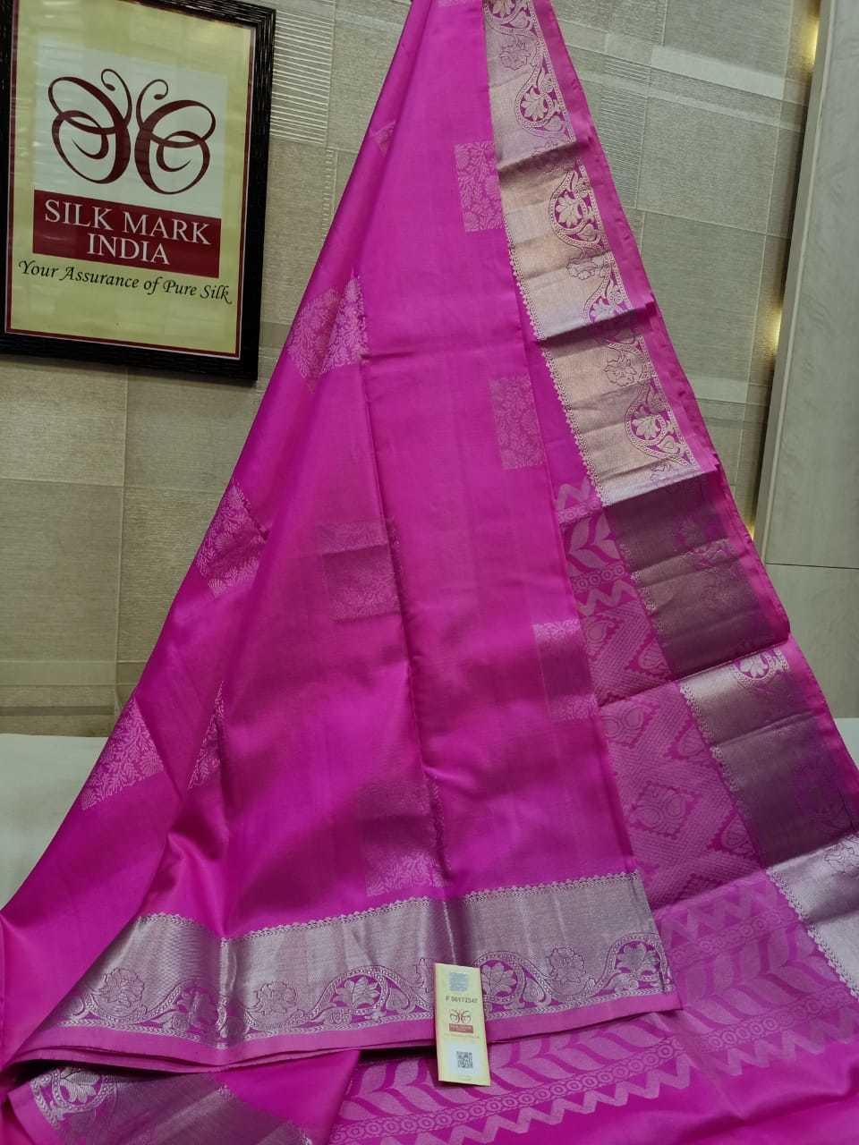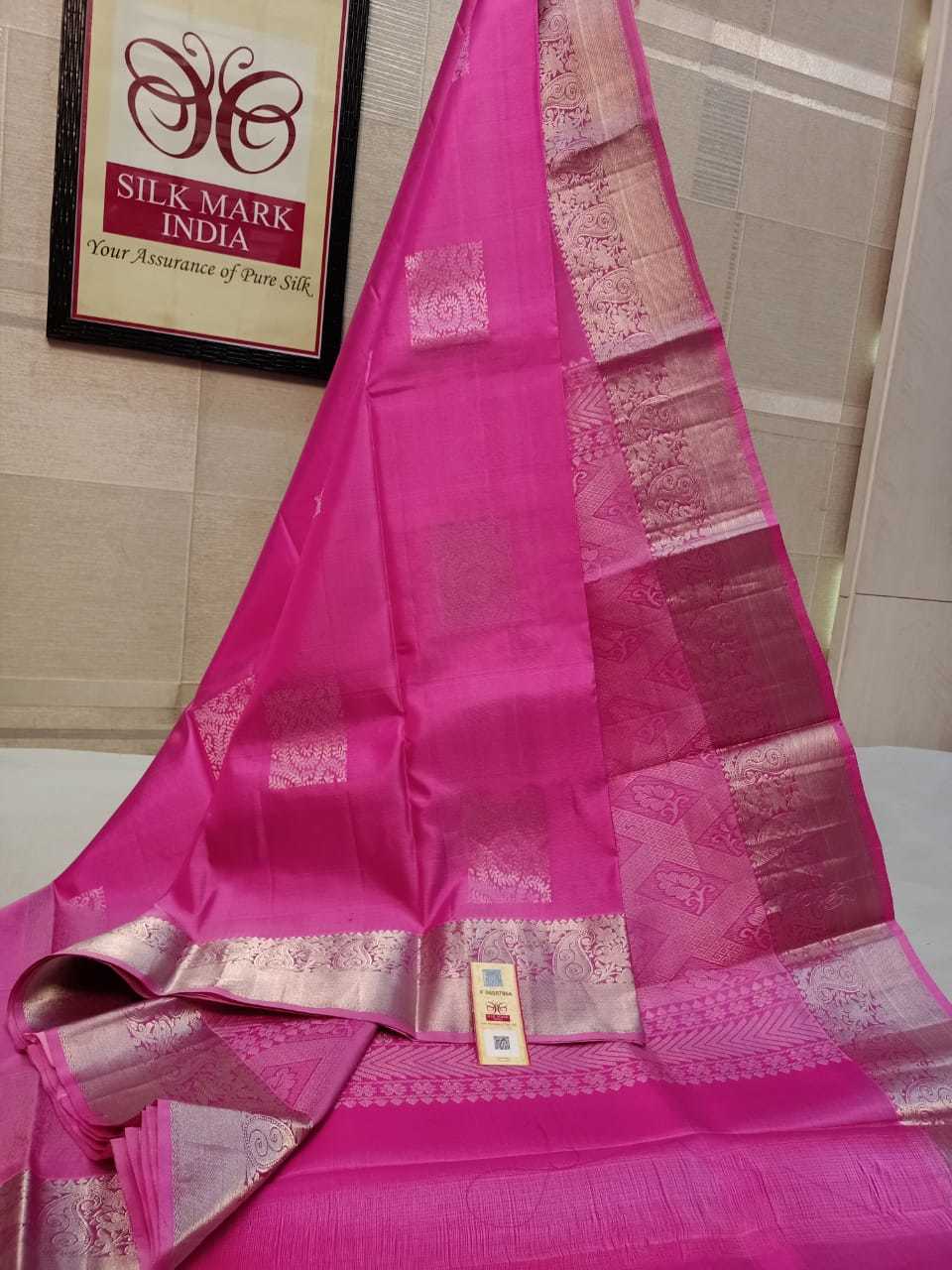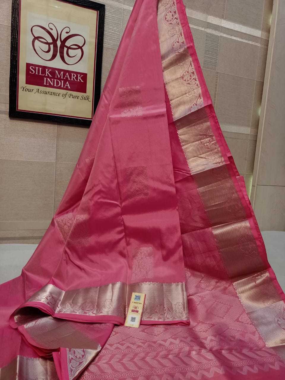 पिंक कांजीवरम सॉफ्ट सिल्क साड़ी सिल्वर जेरी