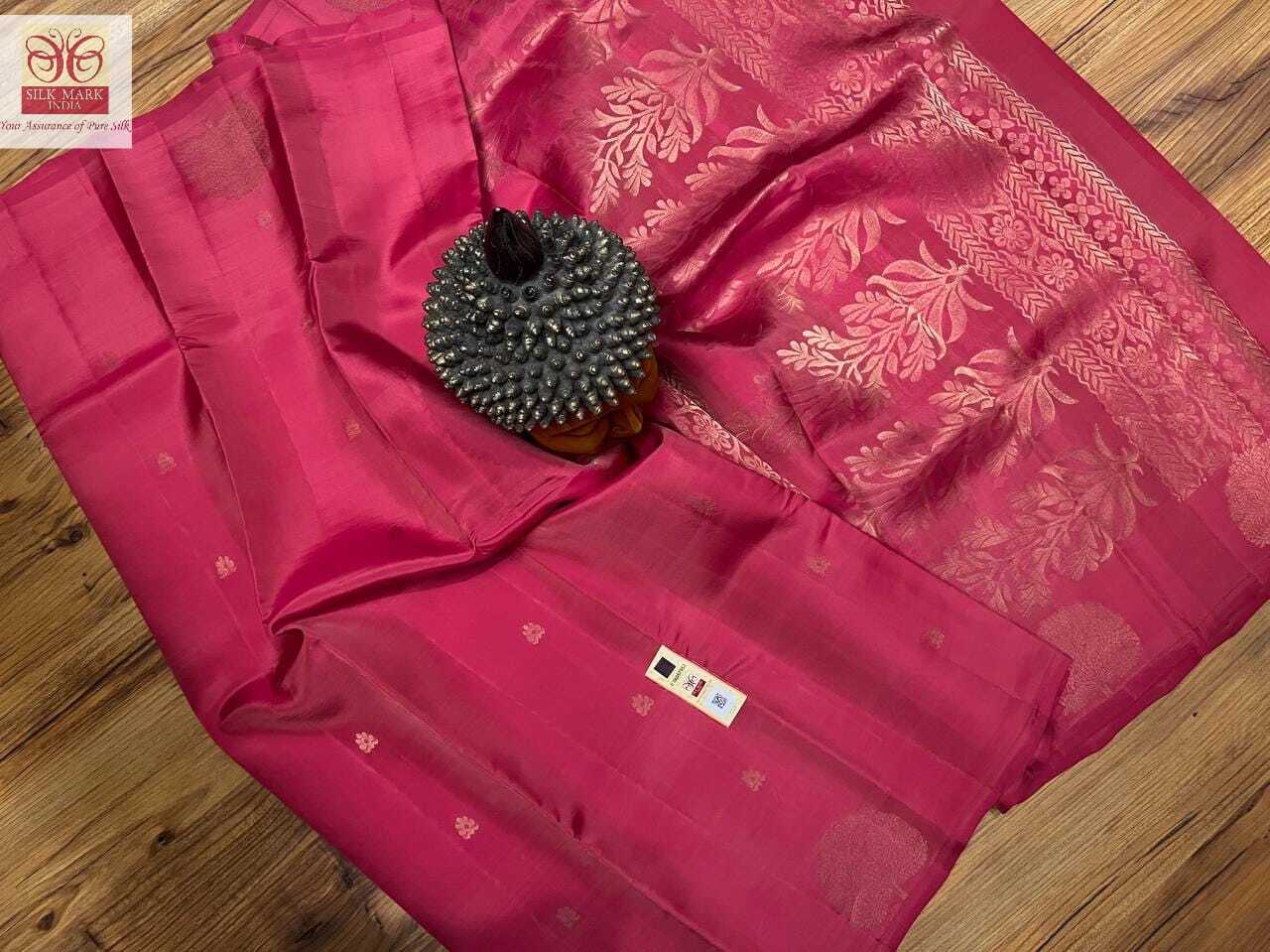 पिंक कांजीवरम सॉफ्ट सिल्क साइड बुड्डा सिल्क