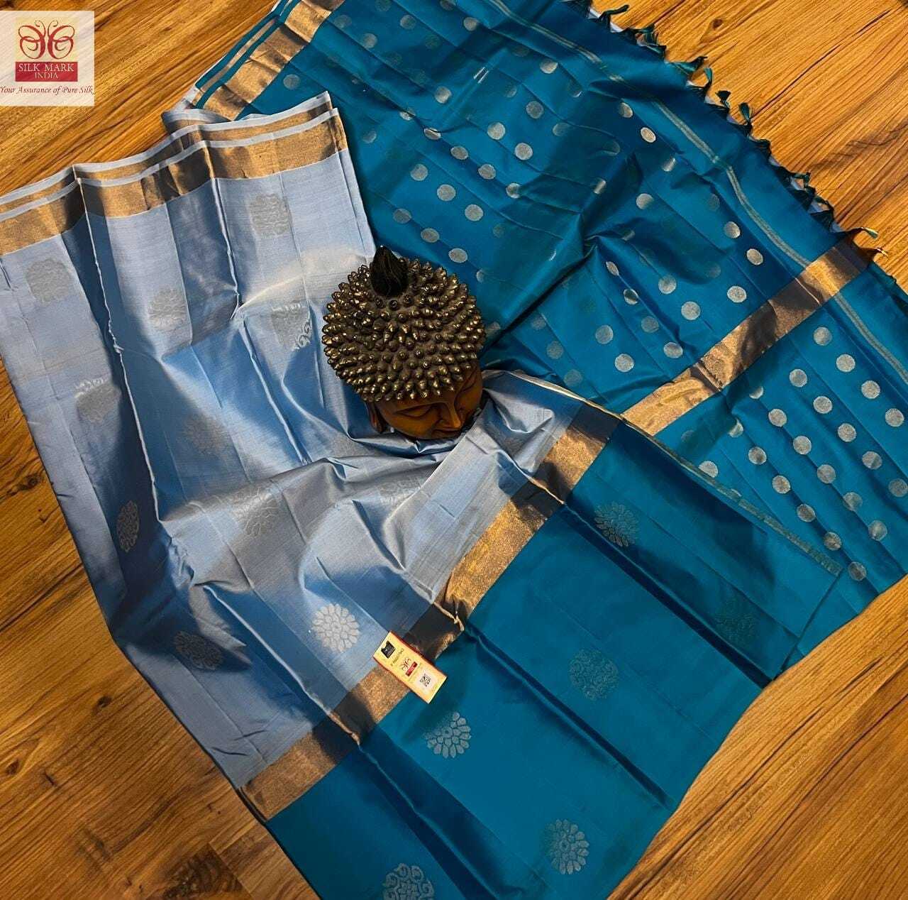 सिल्क साड़ी का नीला कांजीवरम टर्निंग बॉर्डर