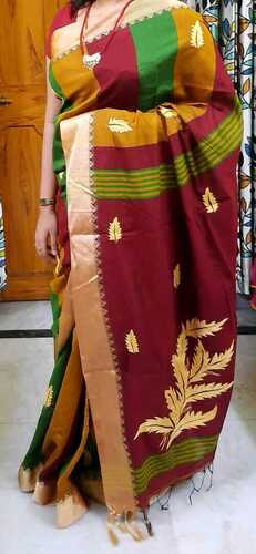 ब्लेंडेड बैंगलोर सिल्क साड़ी पर ऑल ओवर कांथा स्टिच