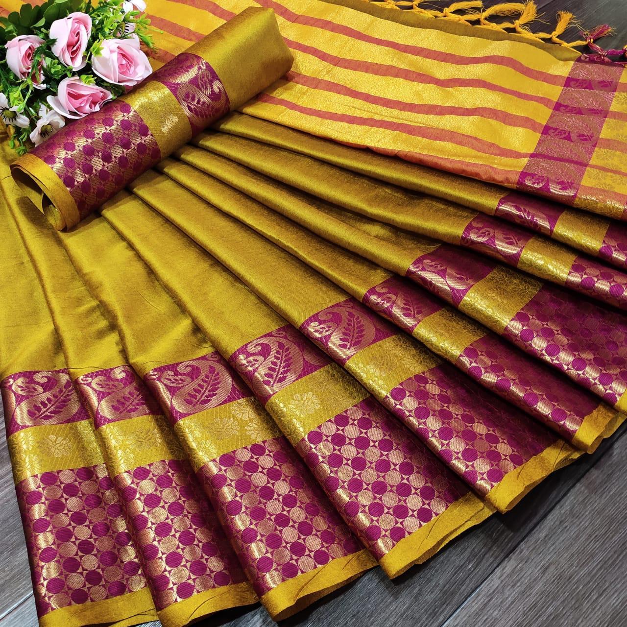 पिंक (गुलाबी) महिलाओं के लिए कॉटन ब्लेंड बेज प्रिंटेड साड़ी ब्लाउज पीस के साथ