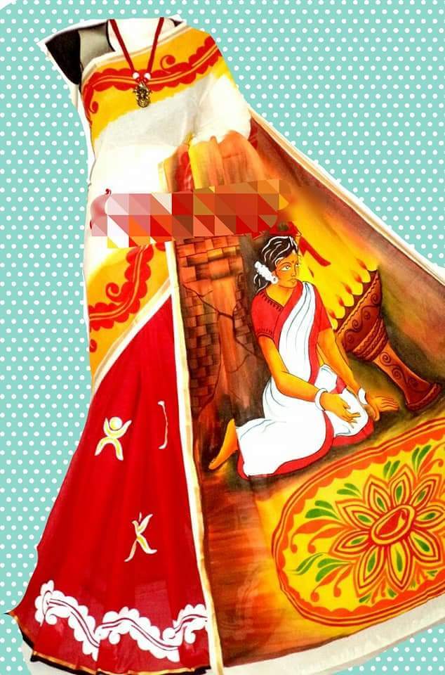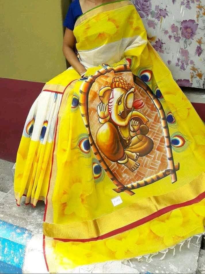 Explore in english - Kerela Cotton Hand Batik Printed Sarees